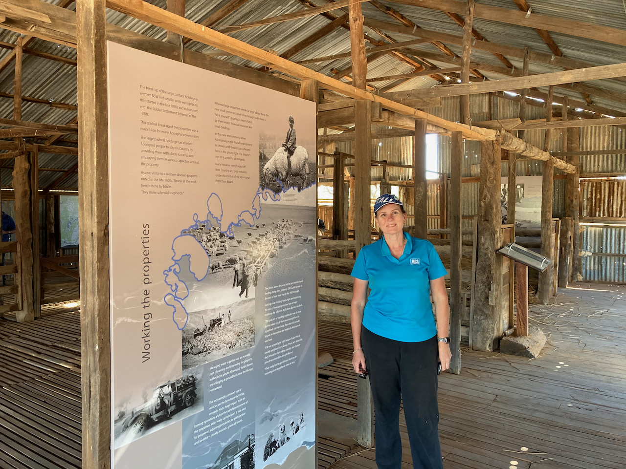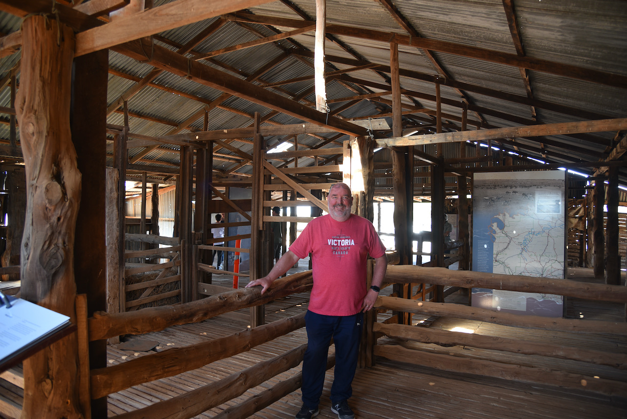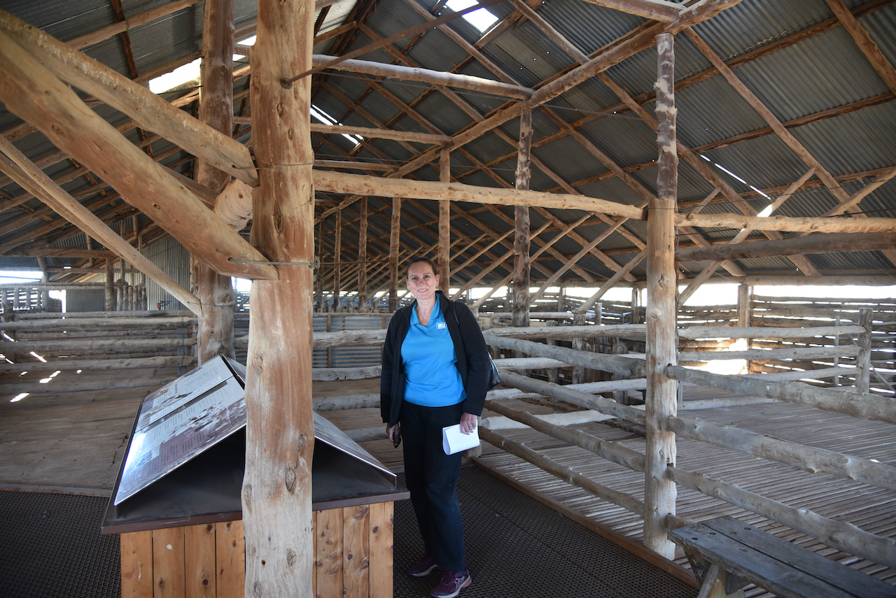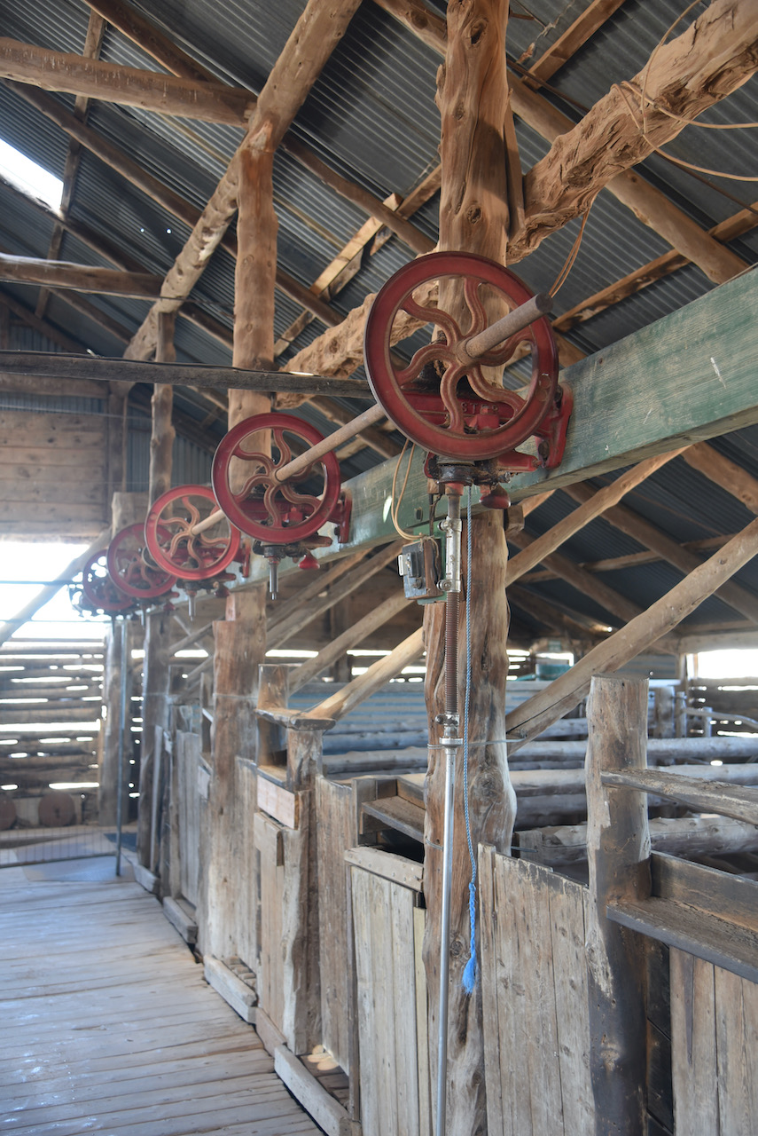We then walked outside to have a look at the Mungo Woolshed. When Mungo Woolshed was built in the late 1860s corrugated iron water tanks were not available. These only came into common use from the 1890s onwards. In order to store the crucial run off from the wooldshed’s massive metal roof, they needed to build the ground storage tank which can be seen today.