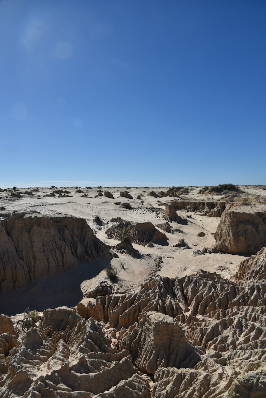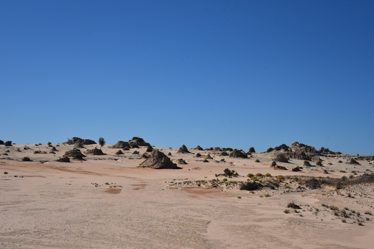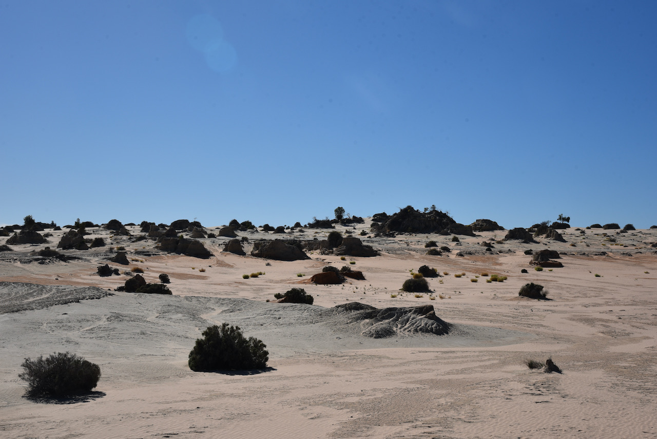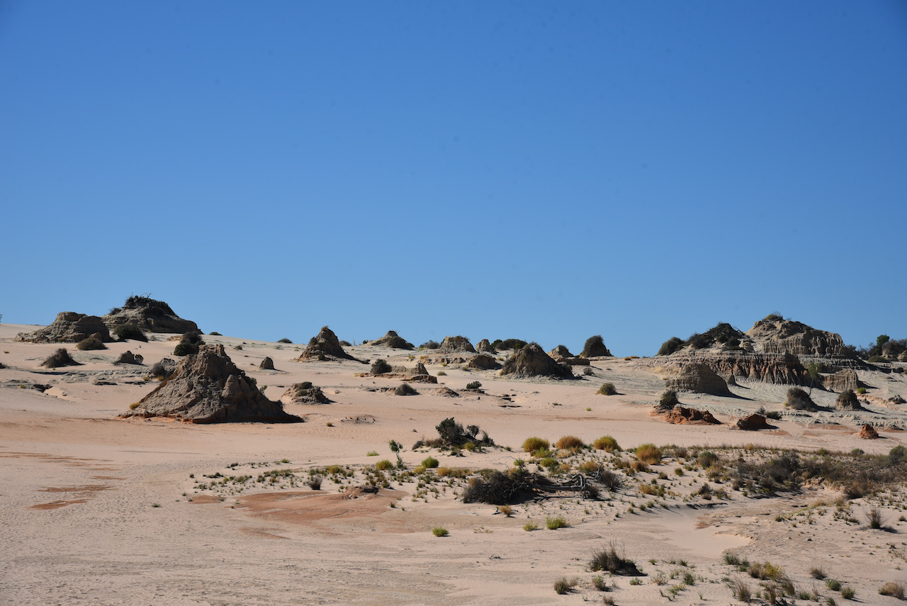Australia’s landscape has been ever changing over the years. The changes to Mungo’s landscape can be dated back as far as 32 million years when the ocean flooded the Murray Darling basin, turning south-western New SOuth Wales into an inland sea. The ocean retreated after 25 million years, however water levels in the area fluctuated as surrounding river systems flooded. From around 150,000 years ago, Lake Mungo and the surrounding lakes in the Willandra Lakes district had been established. Today however, the lakes are dry.