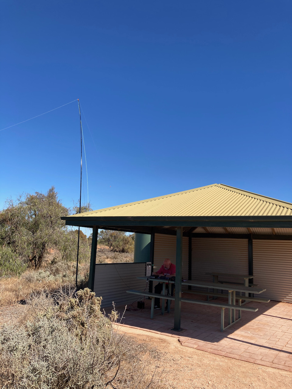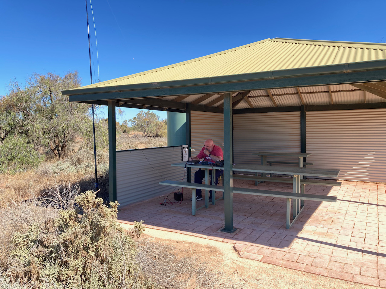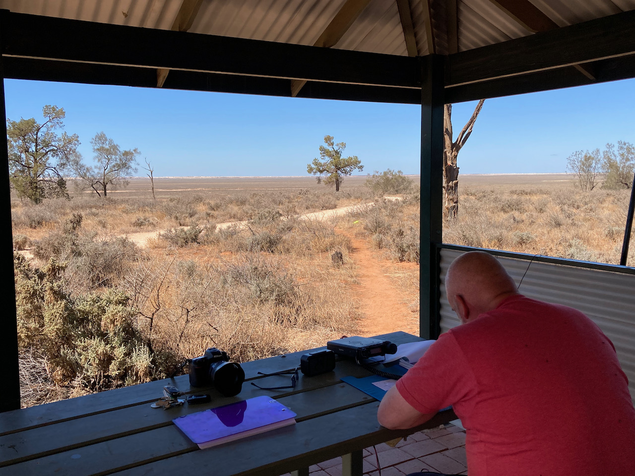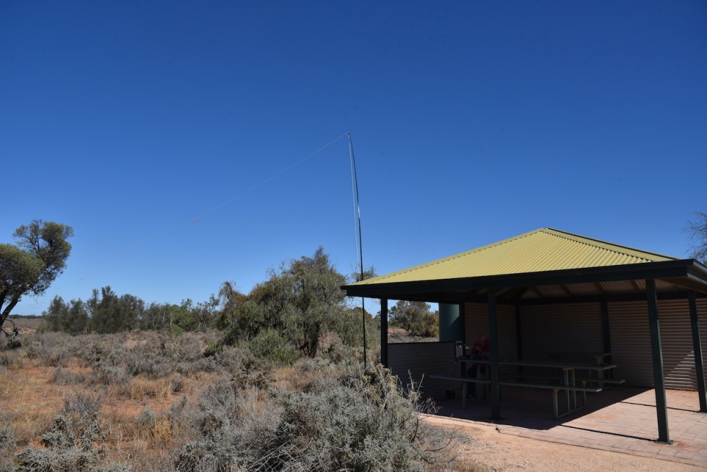 Marija and I headed for the main campsite area at Mungo, however there was a sign saying that campground was full. So operating from there was not going to be an option. We then headed to the Mungo Lookout which appeared to be a quiet location. We found a shelter shed area with nobody around and this proved to be an ideal spot to operate from.