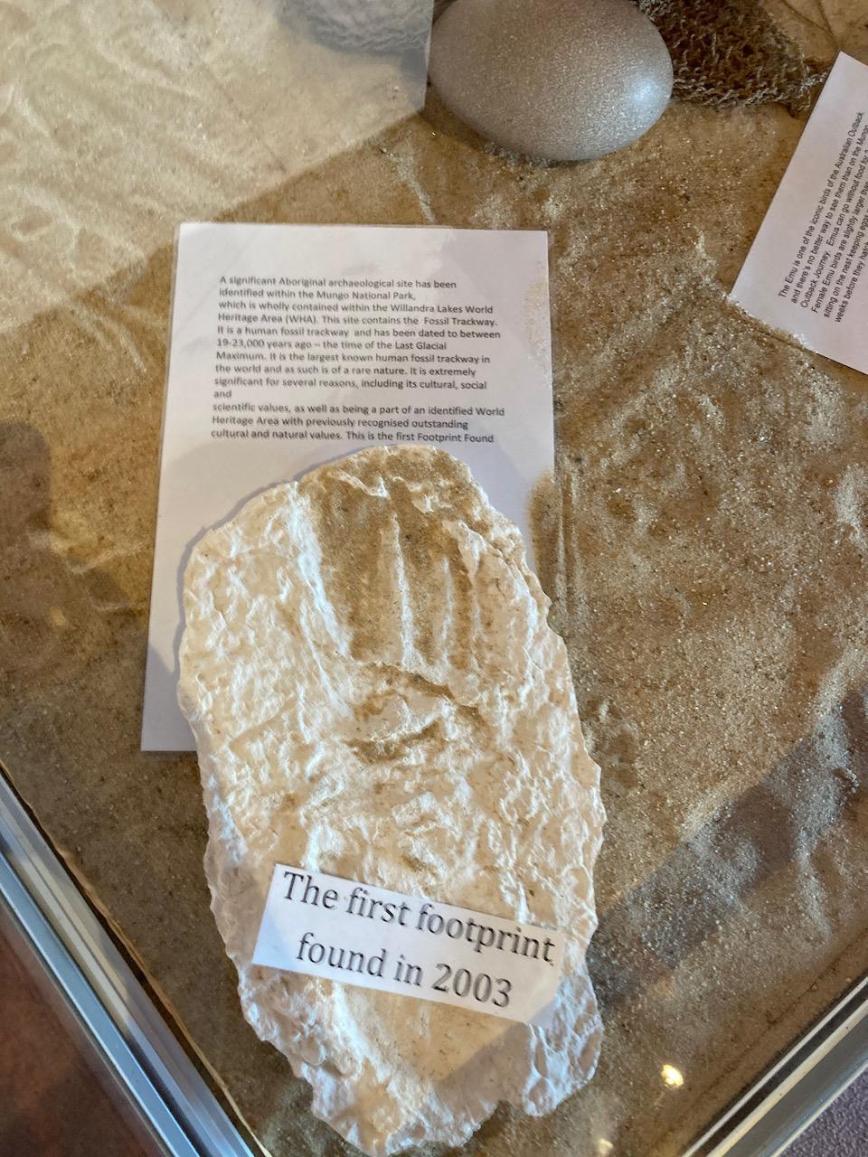 After entering the park our first stop was the Visitor Centre which has an excellent display of information about Mungo. This includes displays of archeological evidence found at Mungo and the megafauna which once lived in the area.