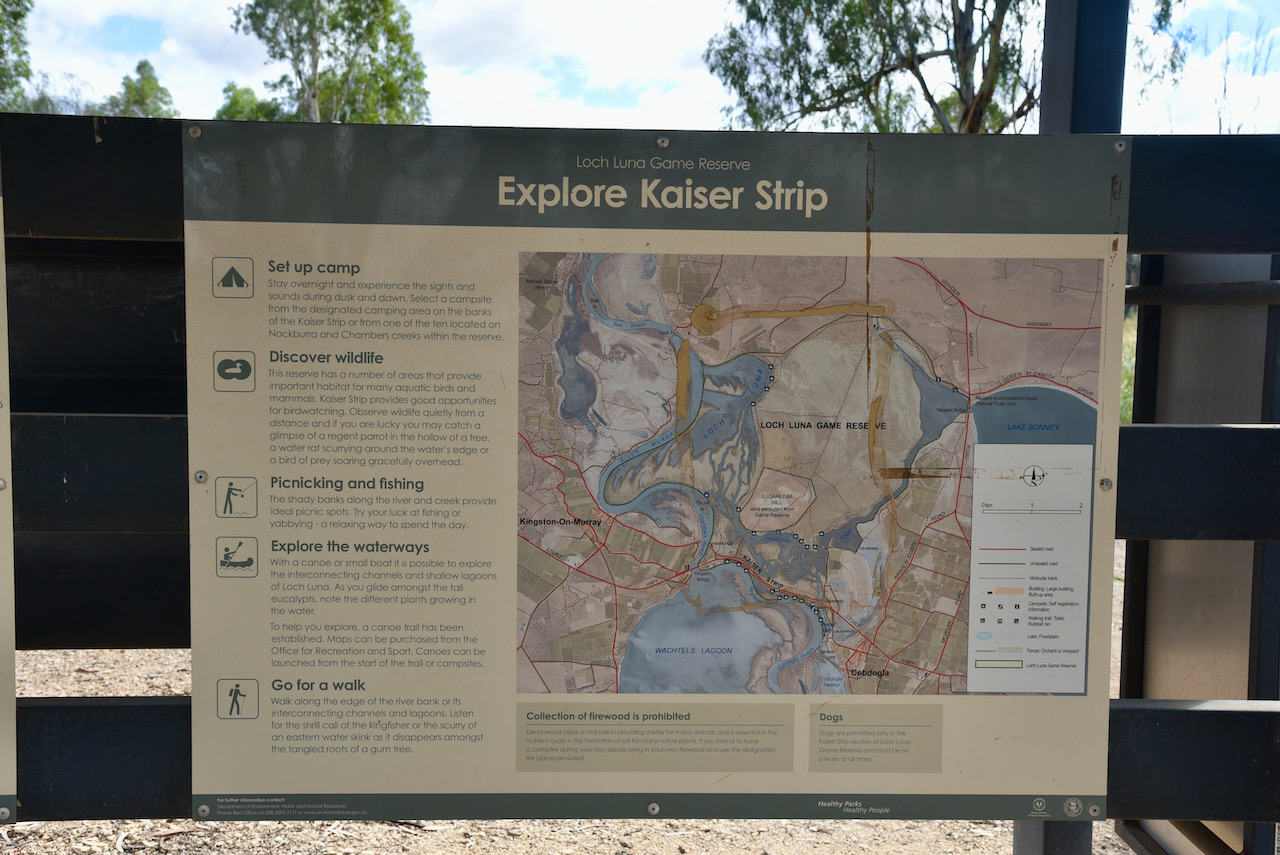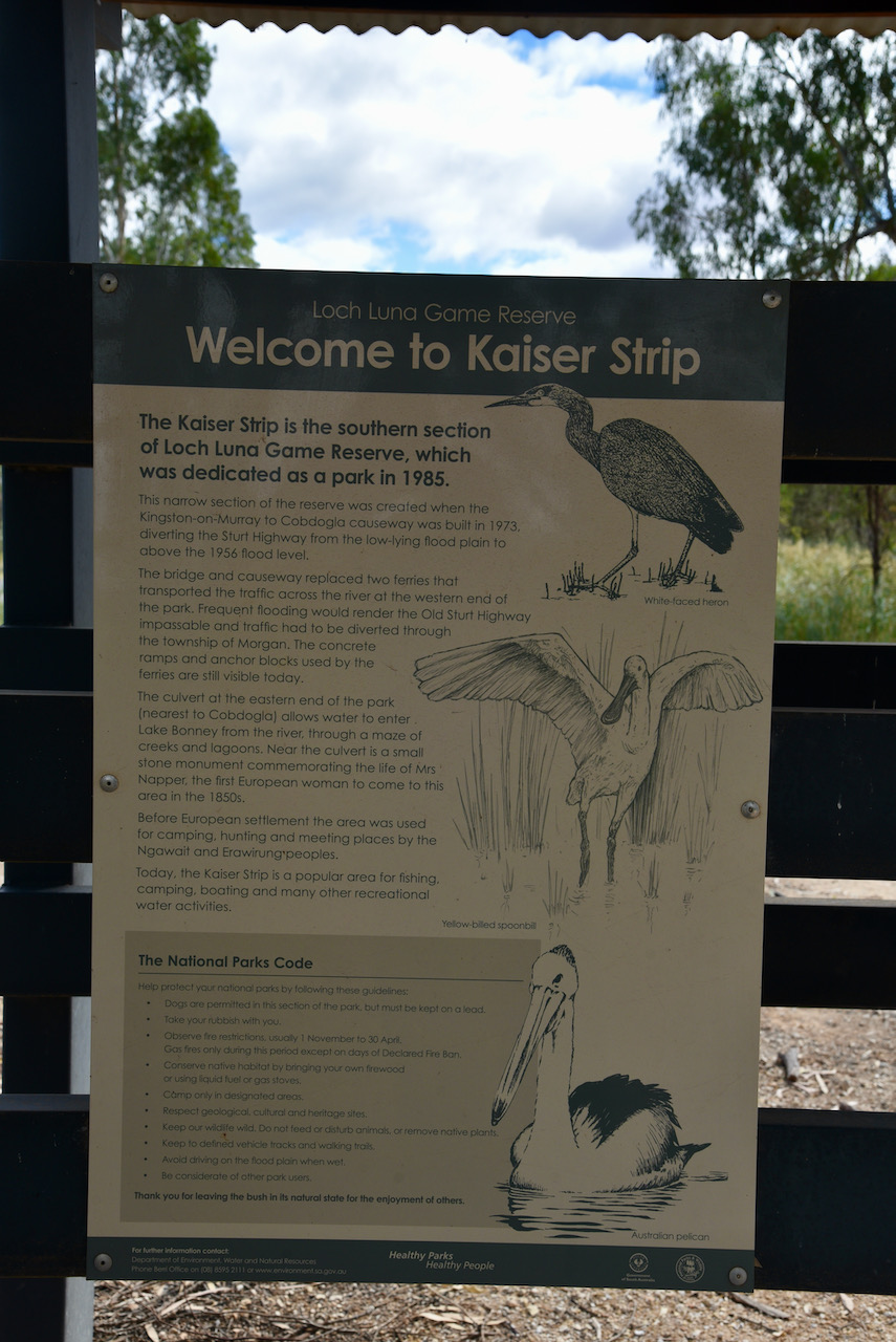 We activated the Kaiser strip in the southern section of the Reserve. This narrow section of the reserve was created when the Kingston-on-Murray to Cobdogla causeway was built in 1973, diverting the Sturt Highway from the low lying flood plain to above the 1956 flood level.