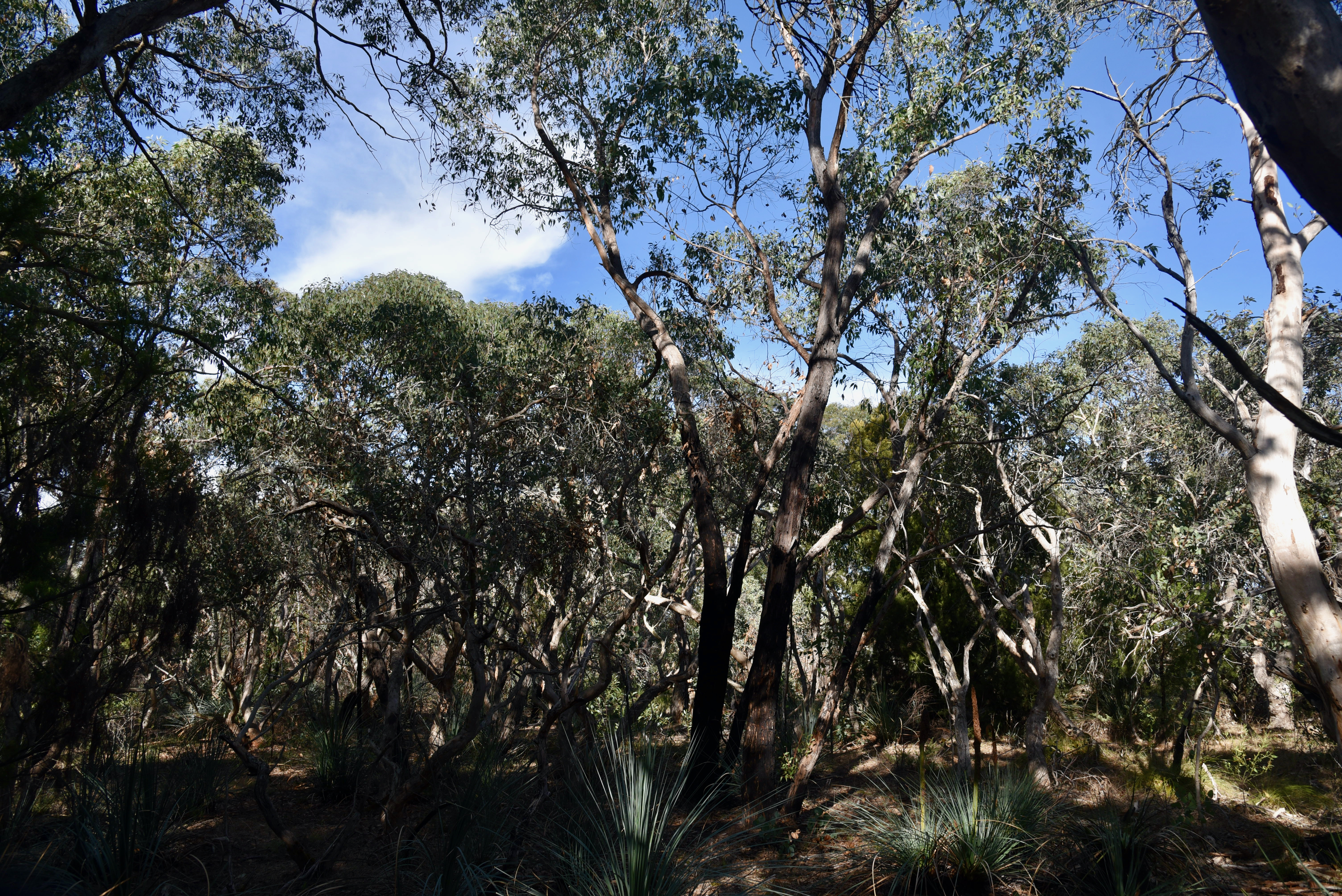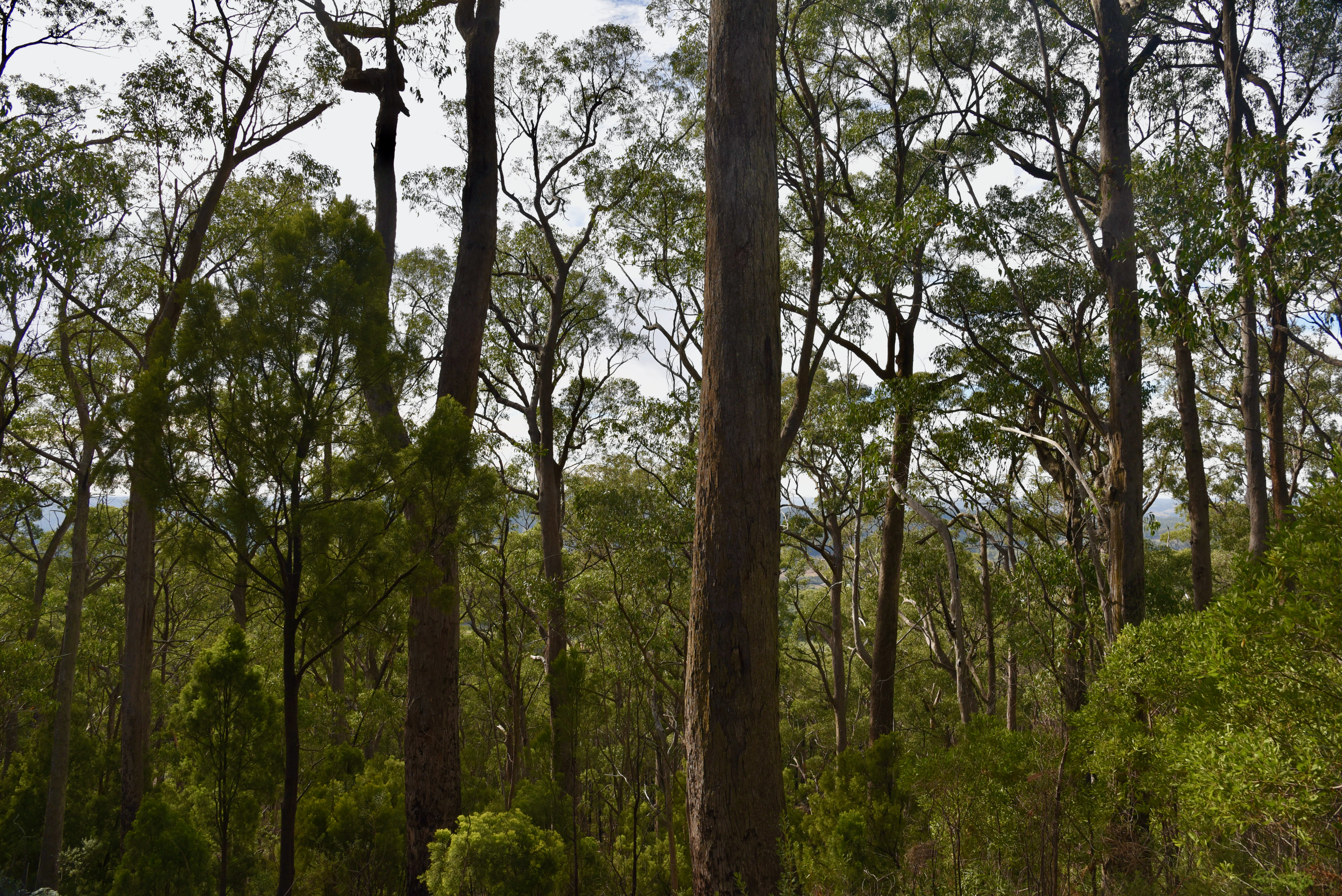 The overstorey in the park is predominantly messmate stringy bark (Eucalyptus obliqua), with some pink gum (E. fasciculosa) and cup gum (E. cosmophylla) and a diverse under storey.