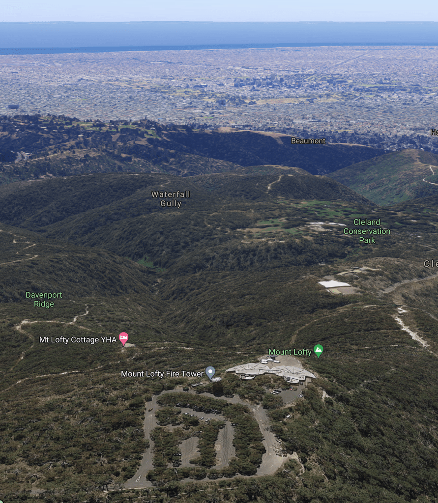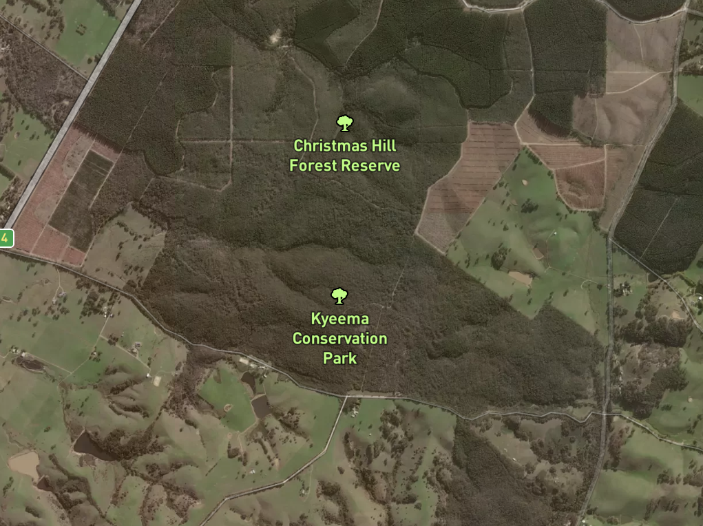 Above:- The Kyeema Conservation Park showing the adjacent Christmas Hill Native Forest Reserve. Image c/o Protected Planet.