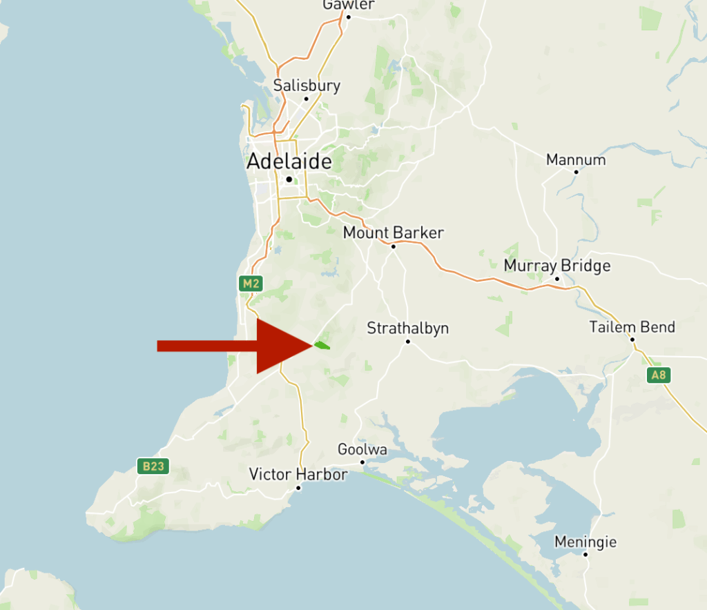 The park is bounded in the south by Woodgate Hill Road, in the east by Blackfellows Creek Road, and the park’s boundary with the locality of Kuitpo in the west and in part to the north.