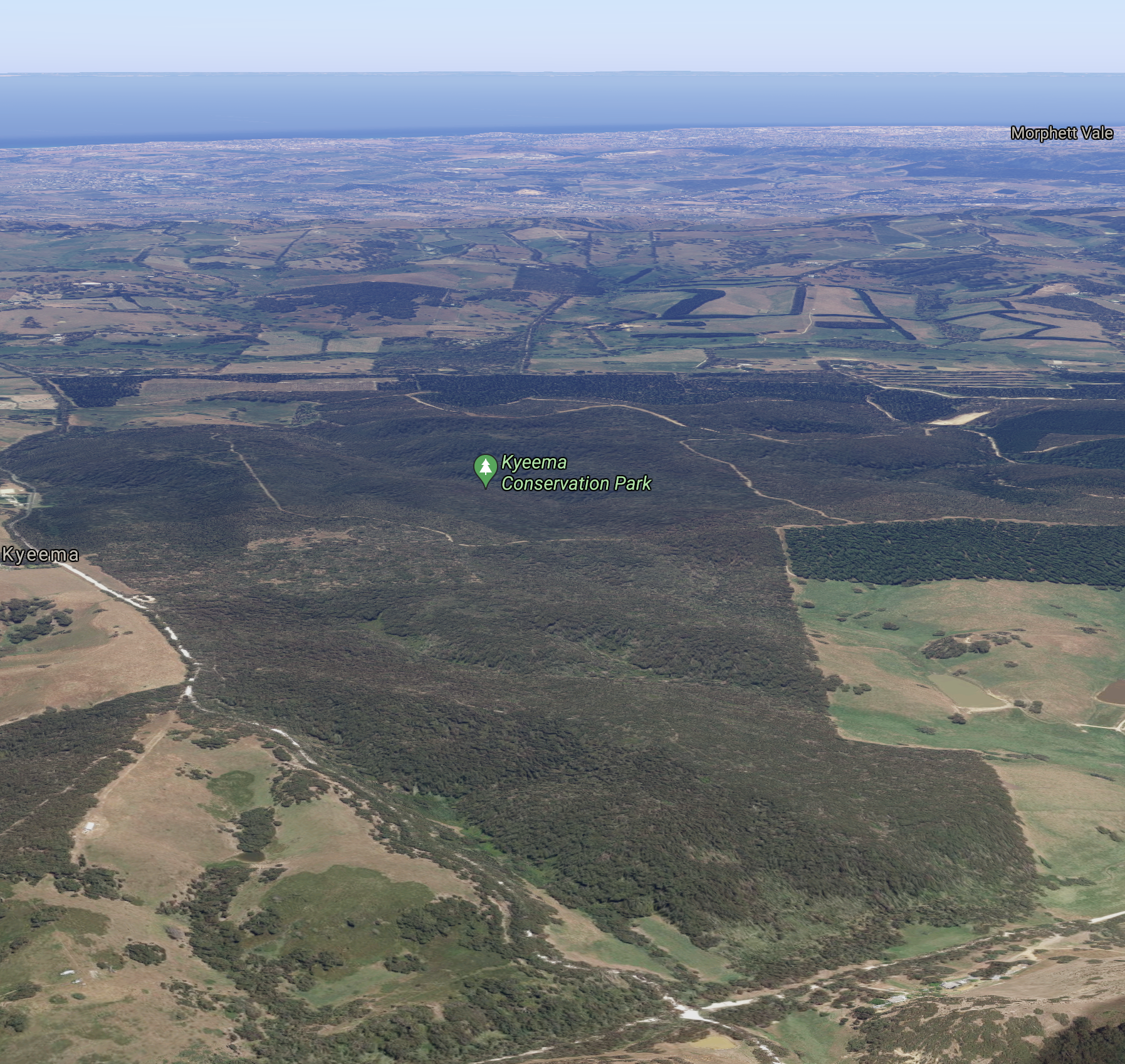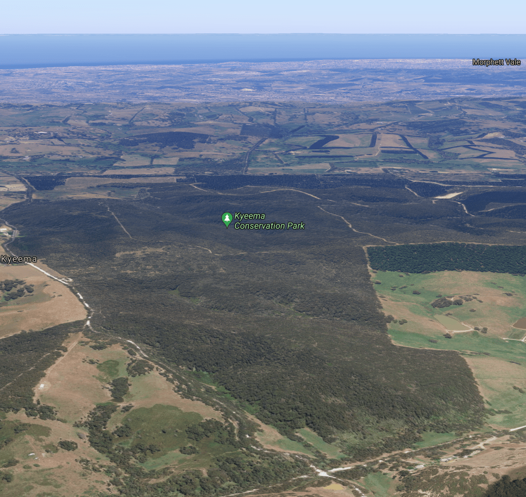 Above:- An aerial shot of the Kyeema Conservation Park. Image c/o Google maps