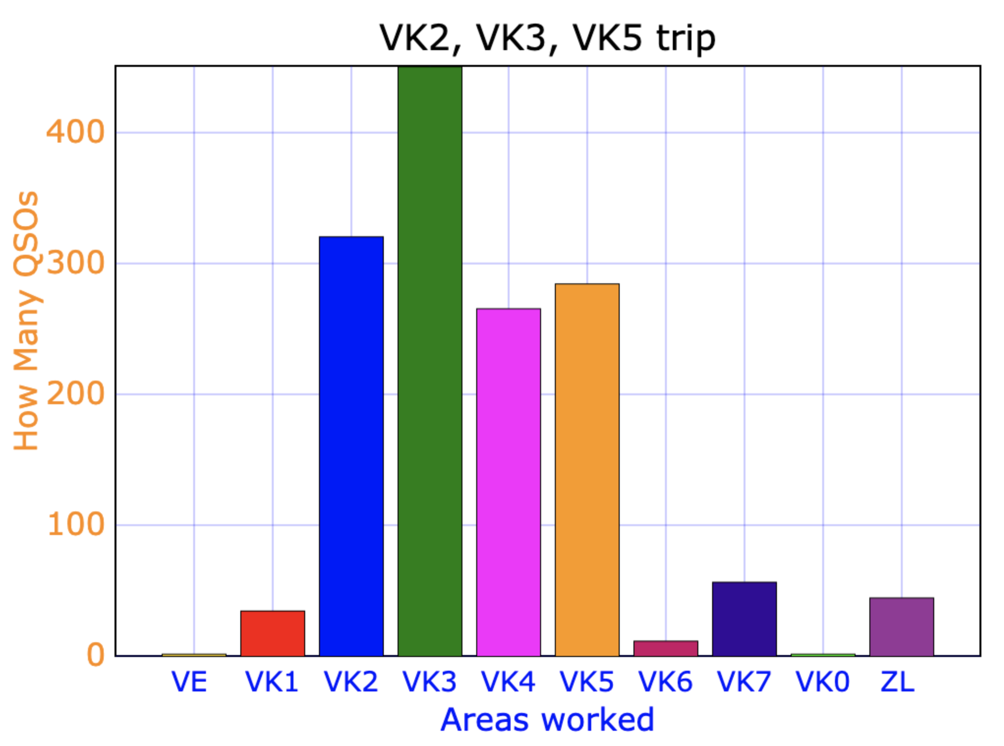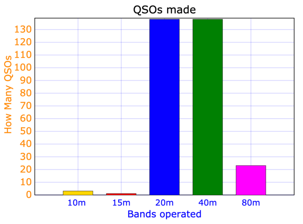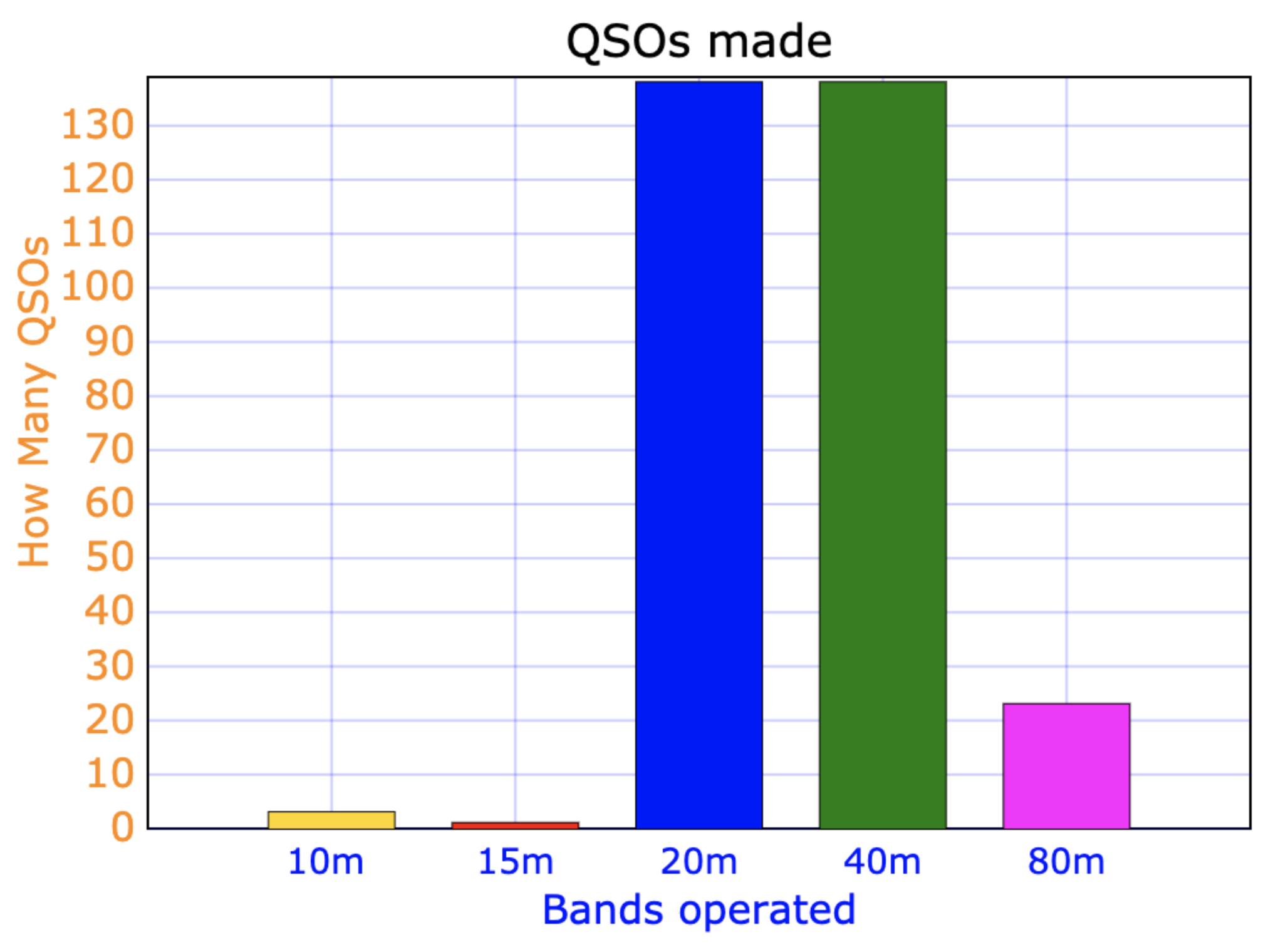 We operated from home and also out in the field. All up we made a total of 303 QSOs into 27 different DXCC entities.