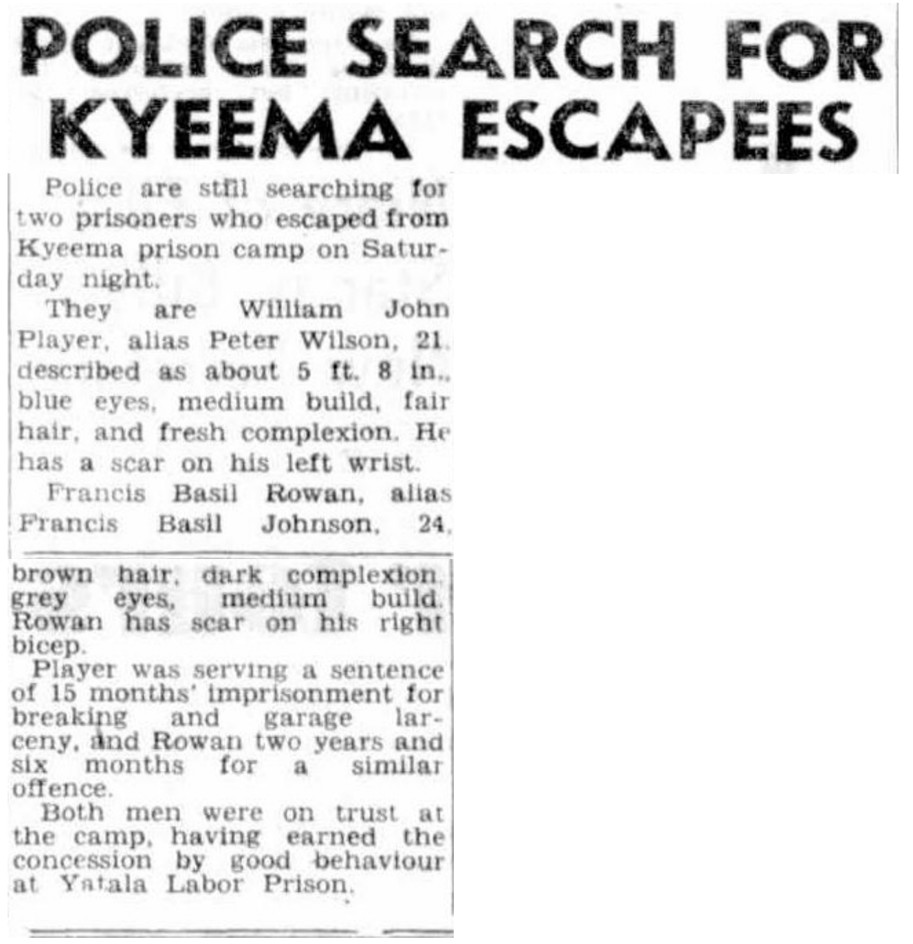 Above:- News article re escapees from Kyeema, The News Adelaide, 15 March 1948. Image c/o Trove