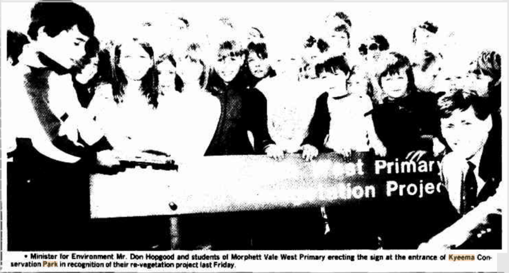 Prior uses of the land included the use of part of the current day park as a labour prison reserve, the Kyeema Afforestation Camp, which was opened on the 22nd day of March 1932. This was South Australia’s first prison camp. On the 27th day of October 1932 it was gazetted as the Kyeema Prison Camp. It operated until 1959 when it was replaced by the current Cadell Training Centre in the Riverland region of South Australia.