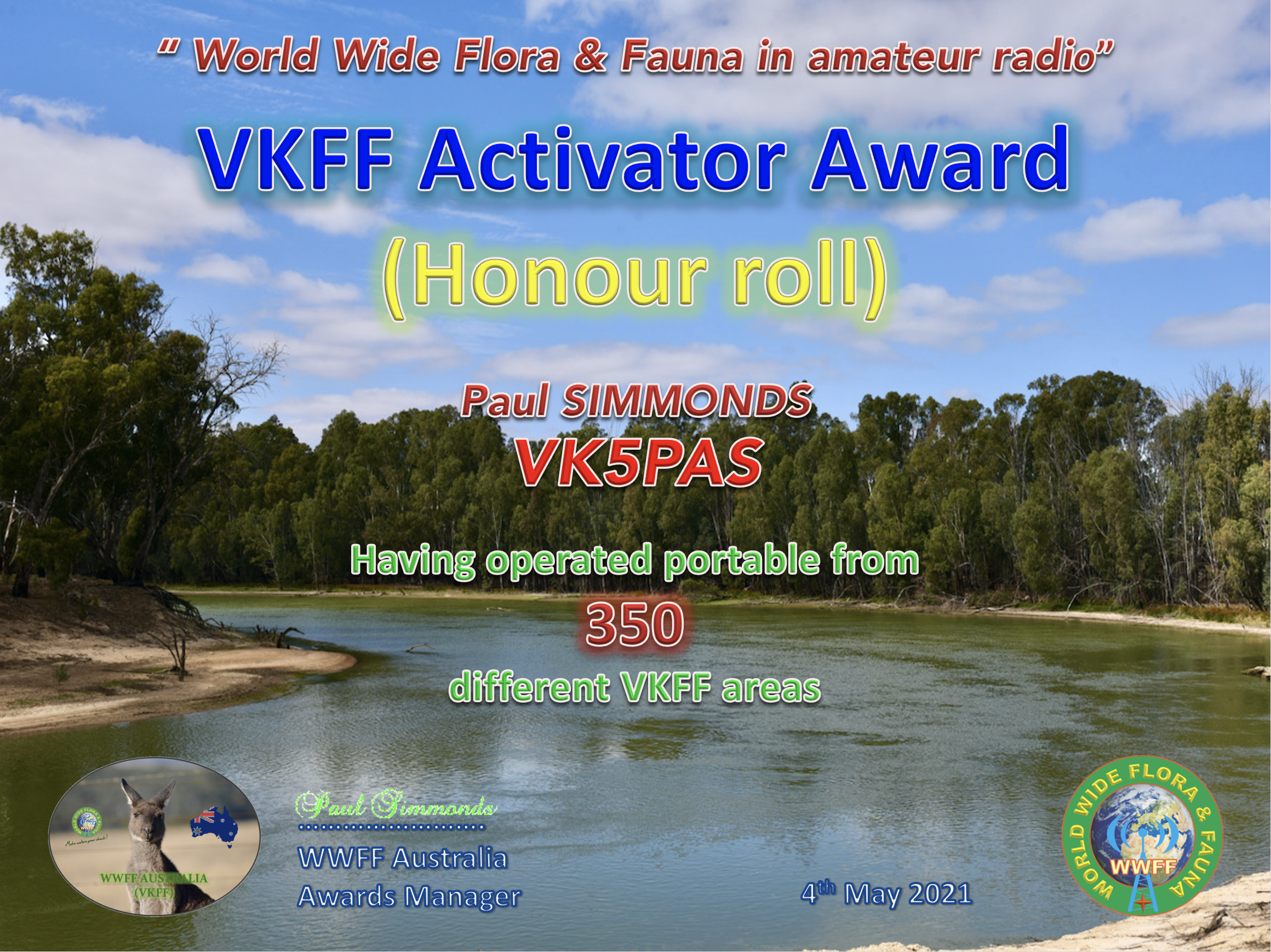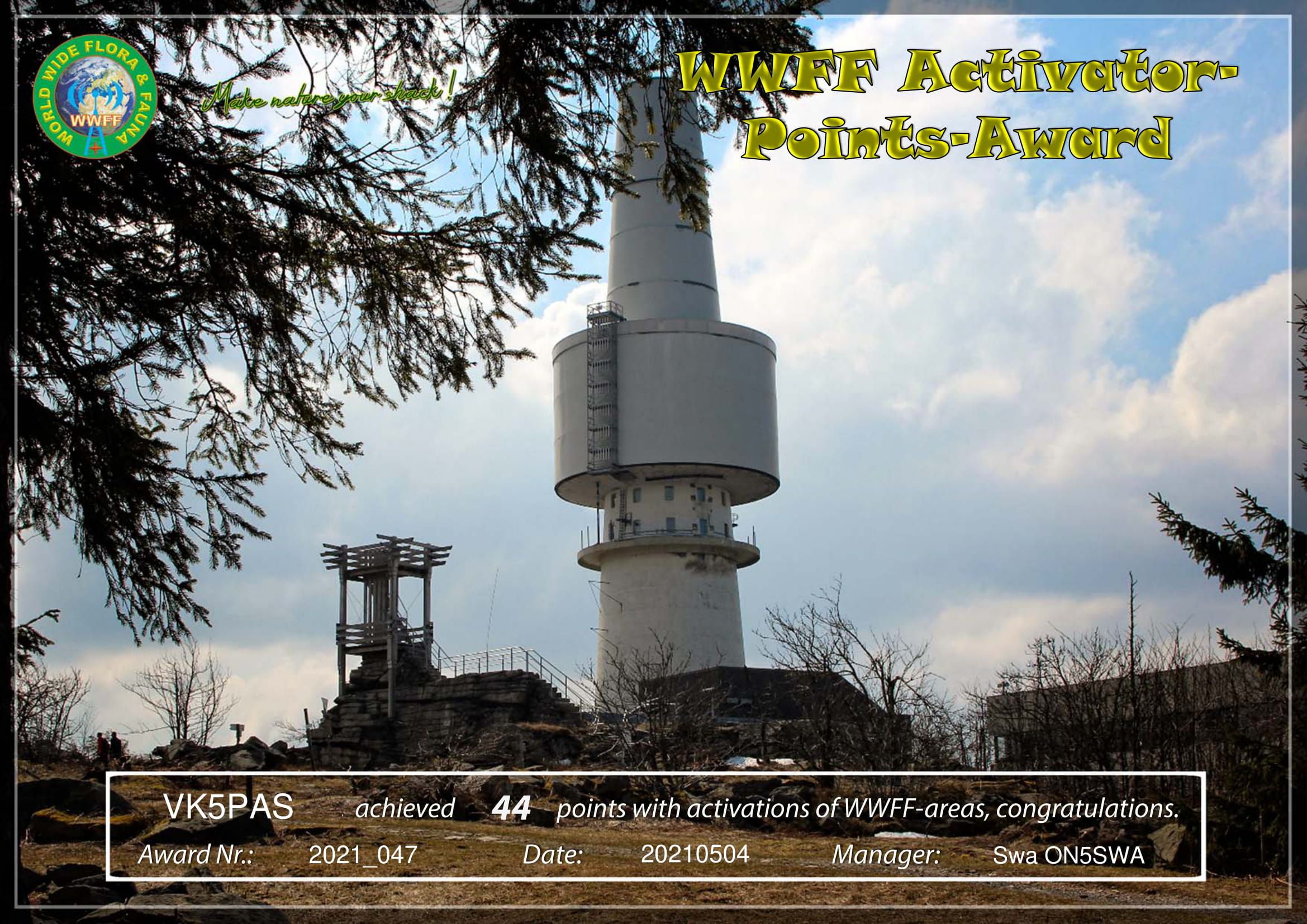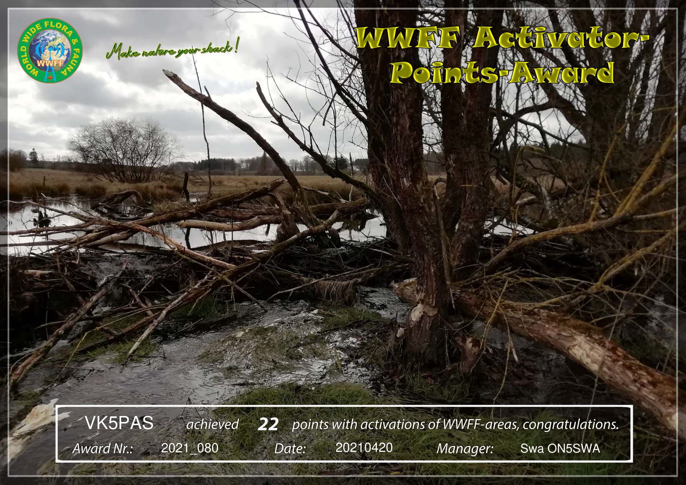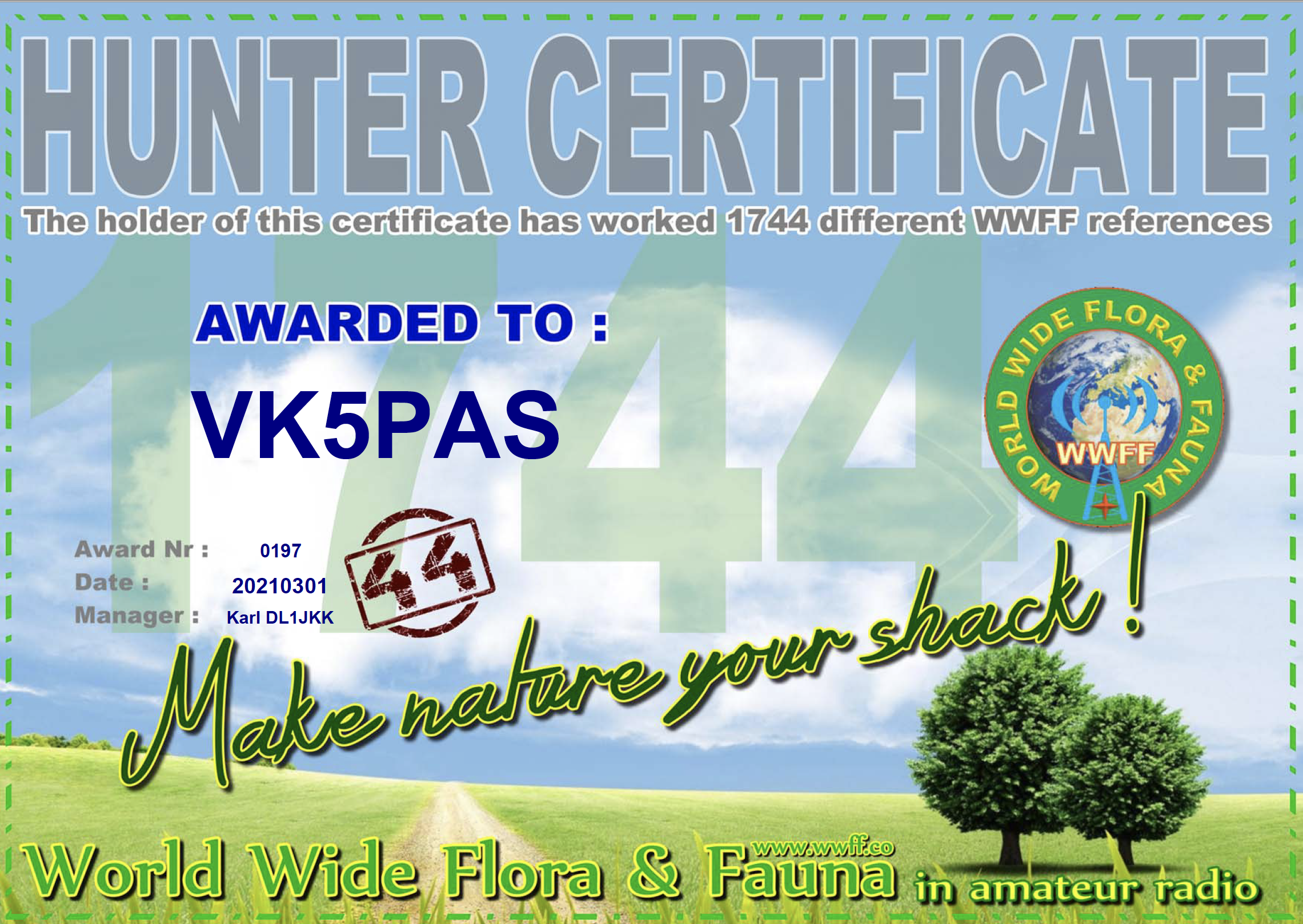Thanks to all of the WWFF activators and thanks to Karl DL1JKK the Awards Manager.