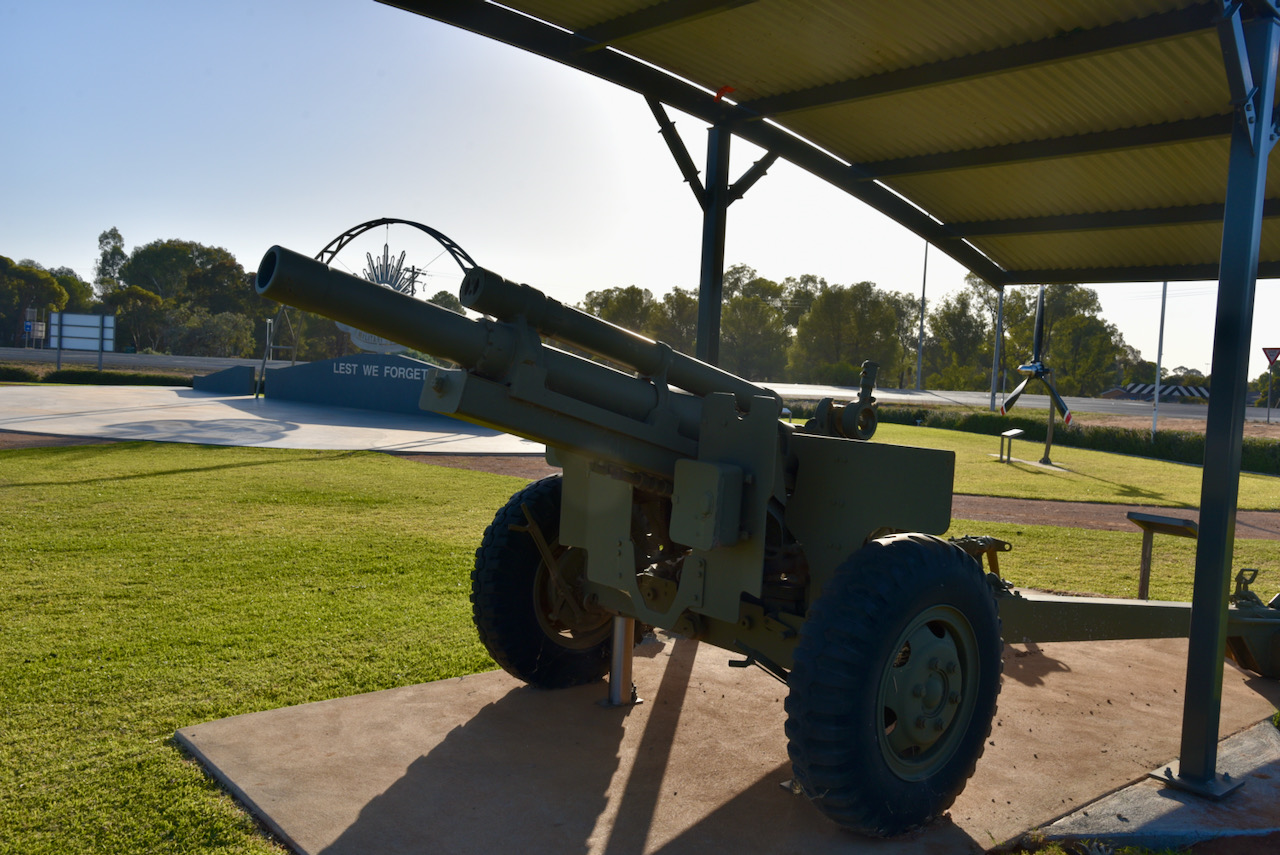 We then visited the Robinvale Regional War Memorial. What an amazing spot for such a little town. The park features a magnificent ‘Rising Sun’, various information boards, a Howitzer, and the propellor from a de Havilland A4 DHC Caribou.