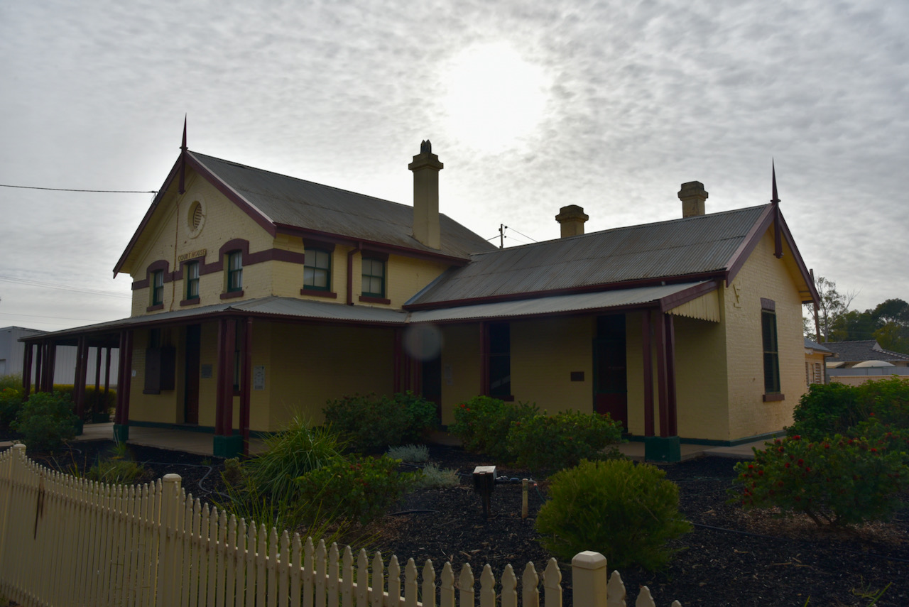 While at the Visitor Info Centre we had a look at the old Robinvale Railway Station. It was built in 1924 at the terminal station on the Korong Vale line to service north western Victoria. This line took a period of almost 40 years to reach from Korong Vale. The Robinvale Station is classified as a 1919 Type C design and is the only remaining example of its type. The Edwardian 1919 design incorporates a lobby one end, an office area and ladies waiting room with a verandah facing the platform, with a yard toilet on the opposite end.