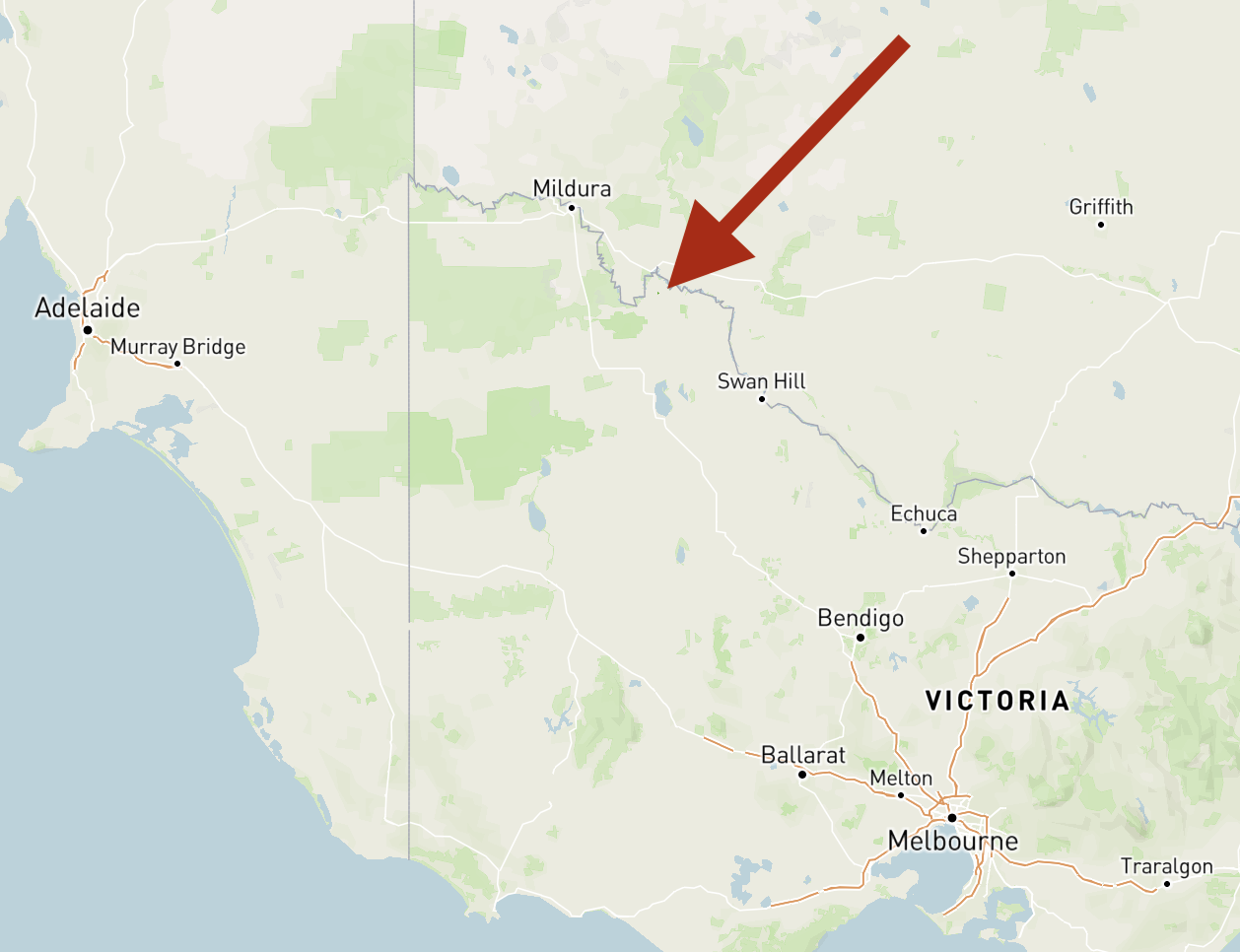 Above:- Map showing the location of the Tol Tol Flora & Fauna Reserve in north-western Victoria. Map c/o Protected Planet.