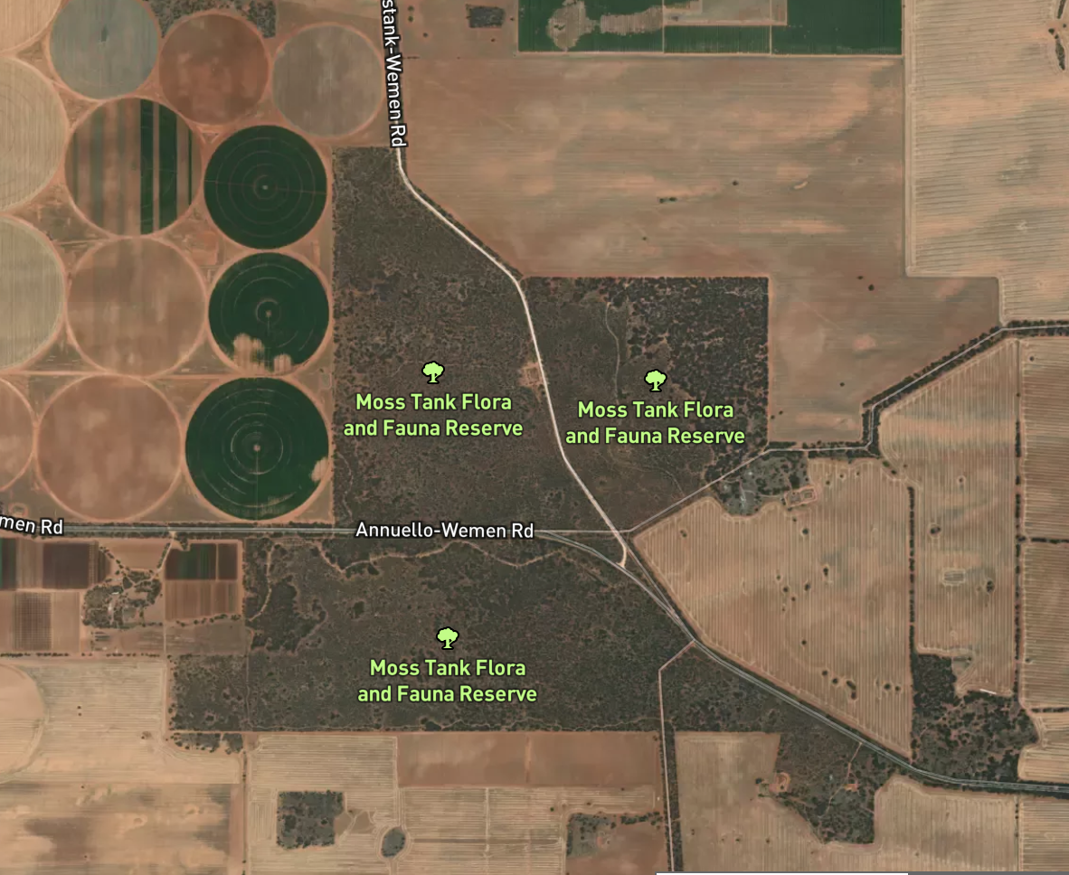 Moss Tank Flora and Fauna Reserve is about 3.26 km² in size and was established in 1988.