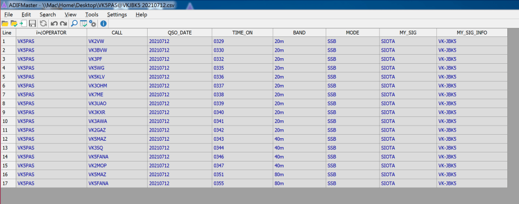 My first contact was with Alan VK4SN. My final contact was with Rob VK2MT.