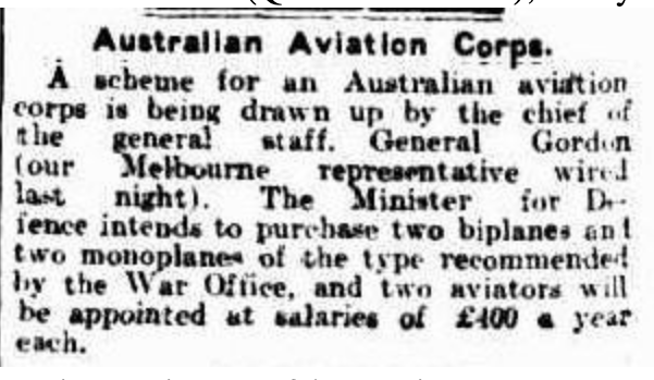 The Australian Flying Corps (AFC) were subsequently formed.