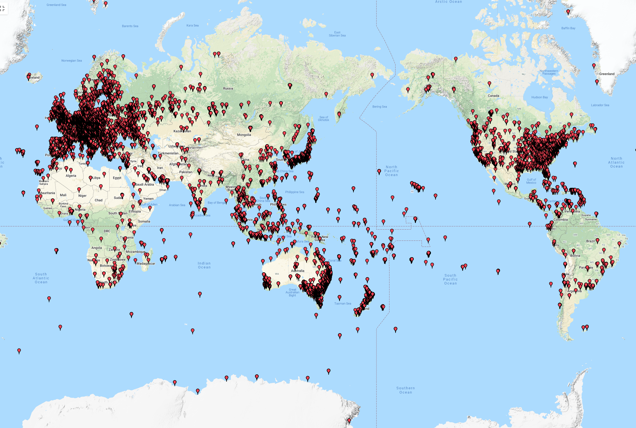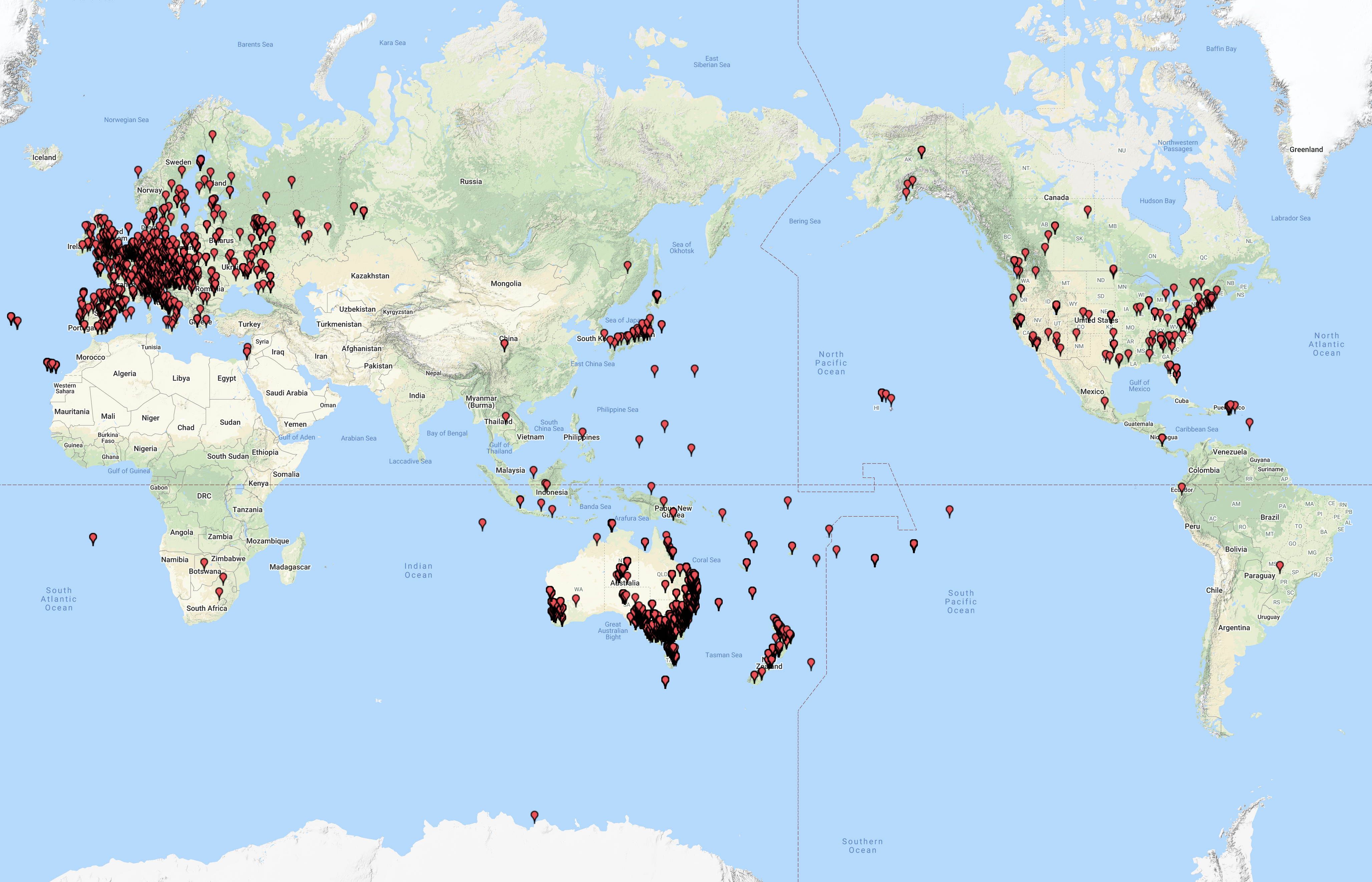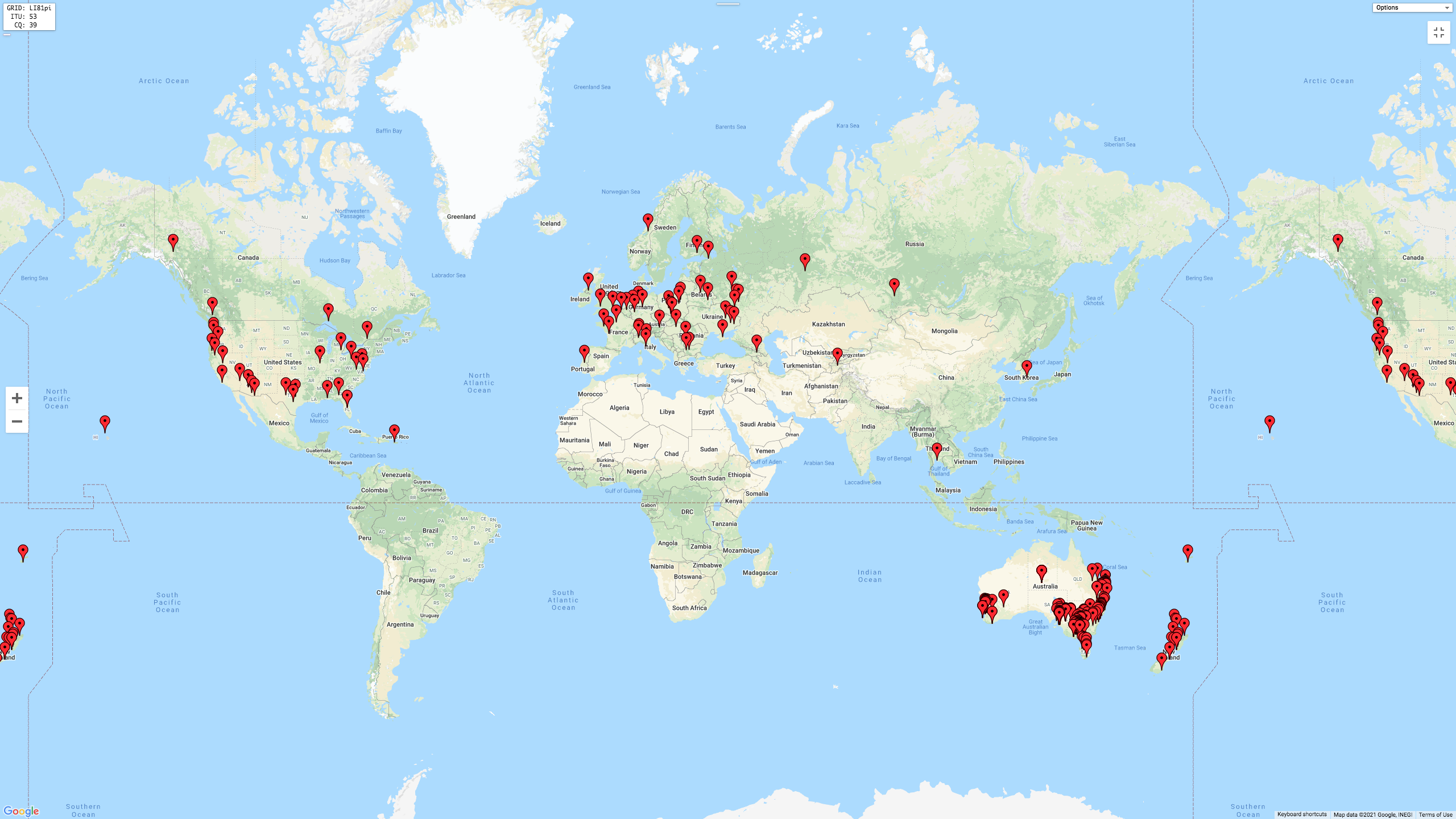 The map below shows my contacts around Australia and New Zealand.