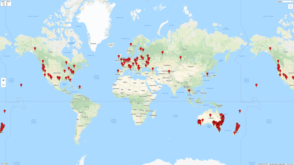 The map below shows my QSOs around the world whilst operating portable.