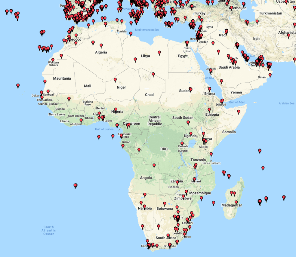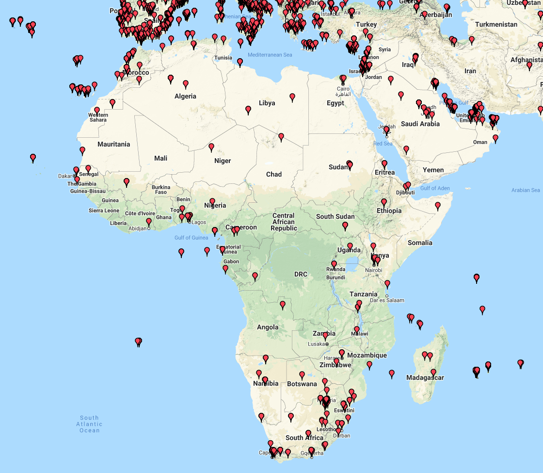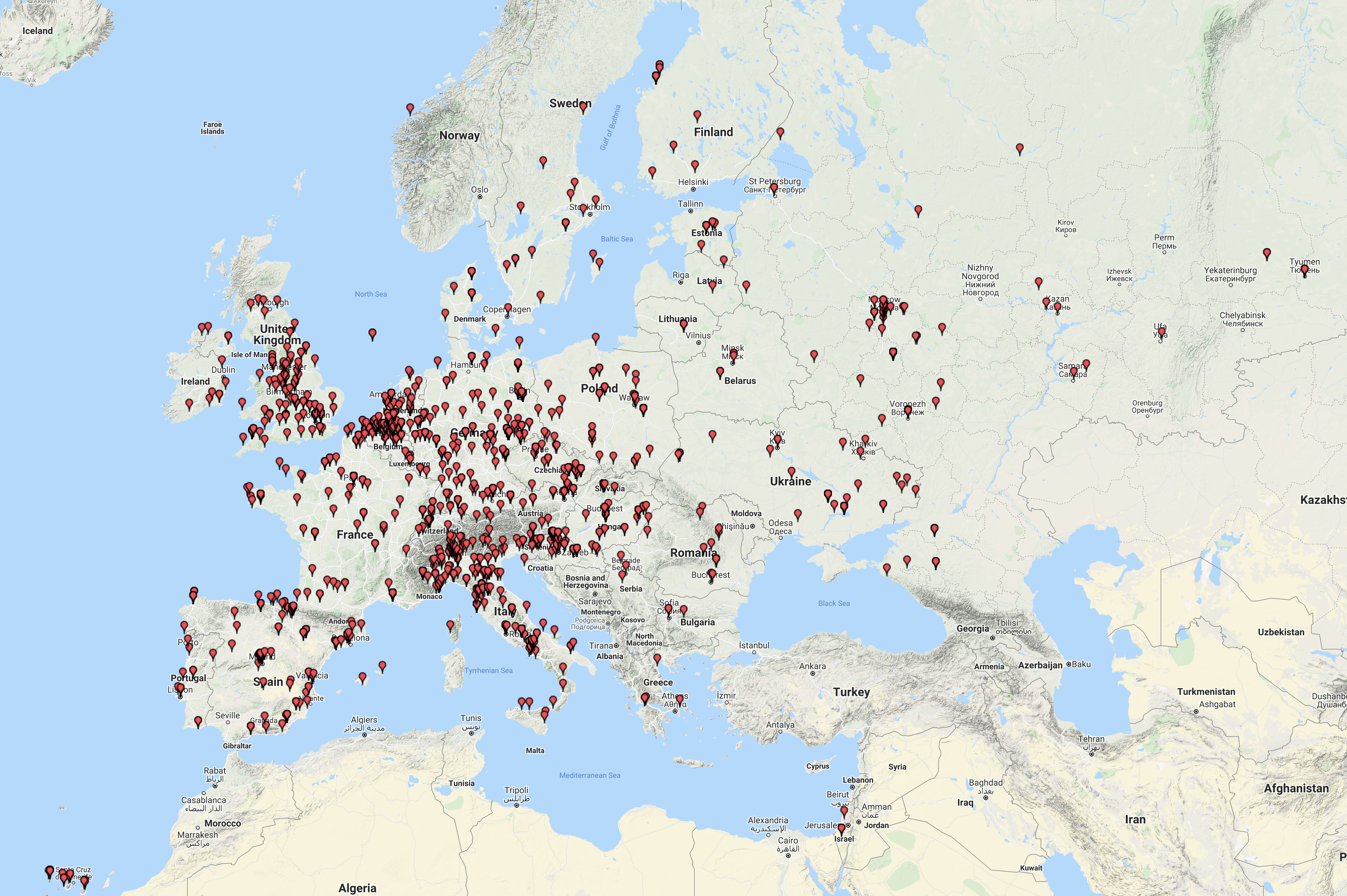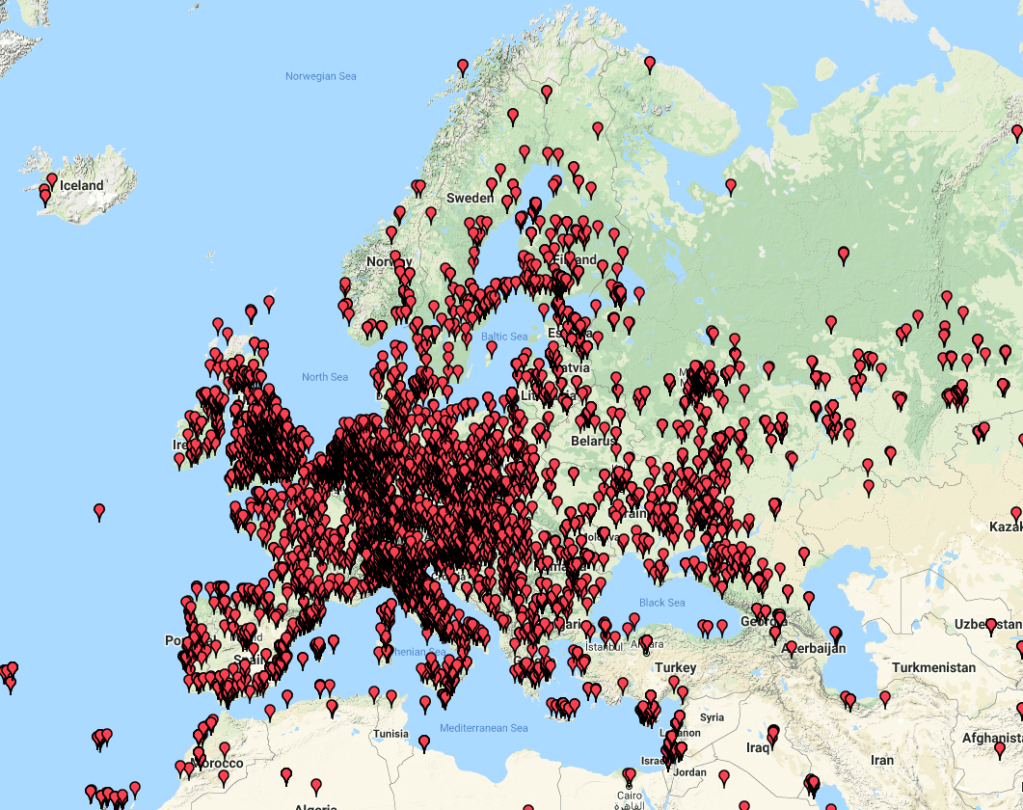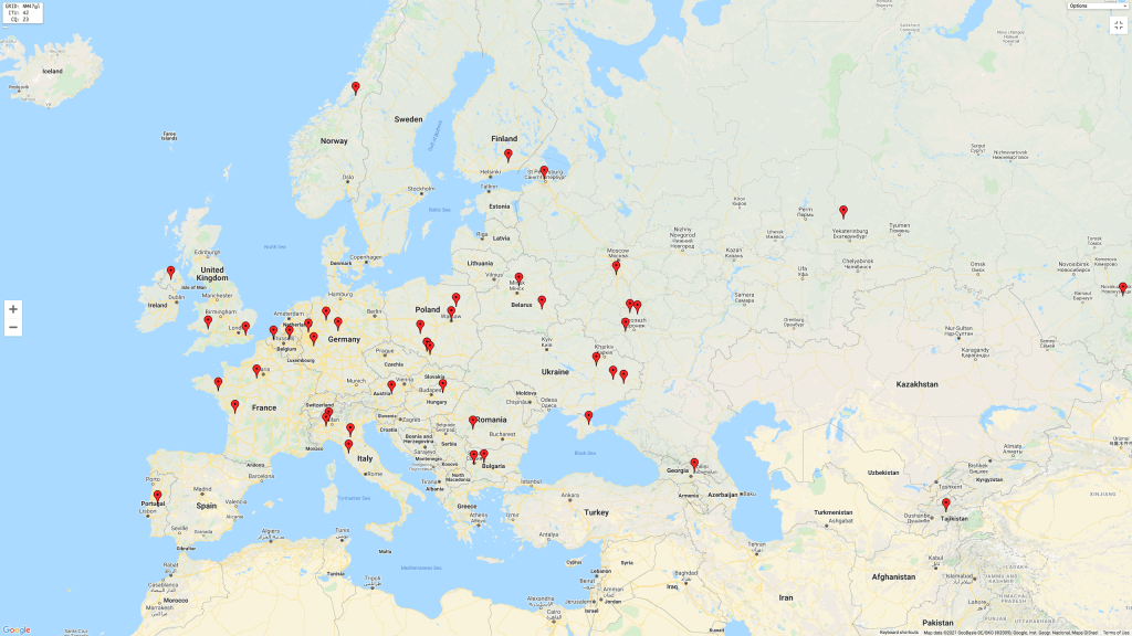 Above:- Map showing our contacts into Europe.