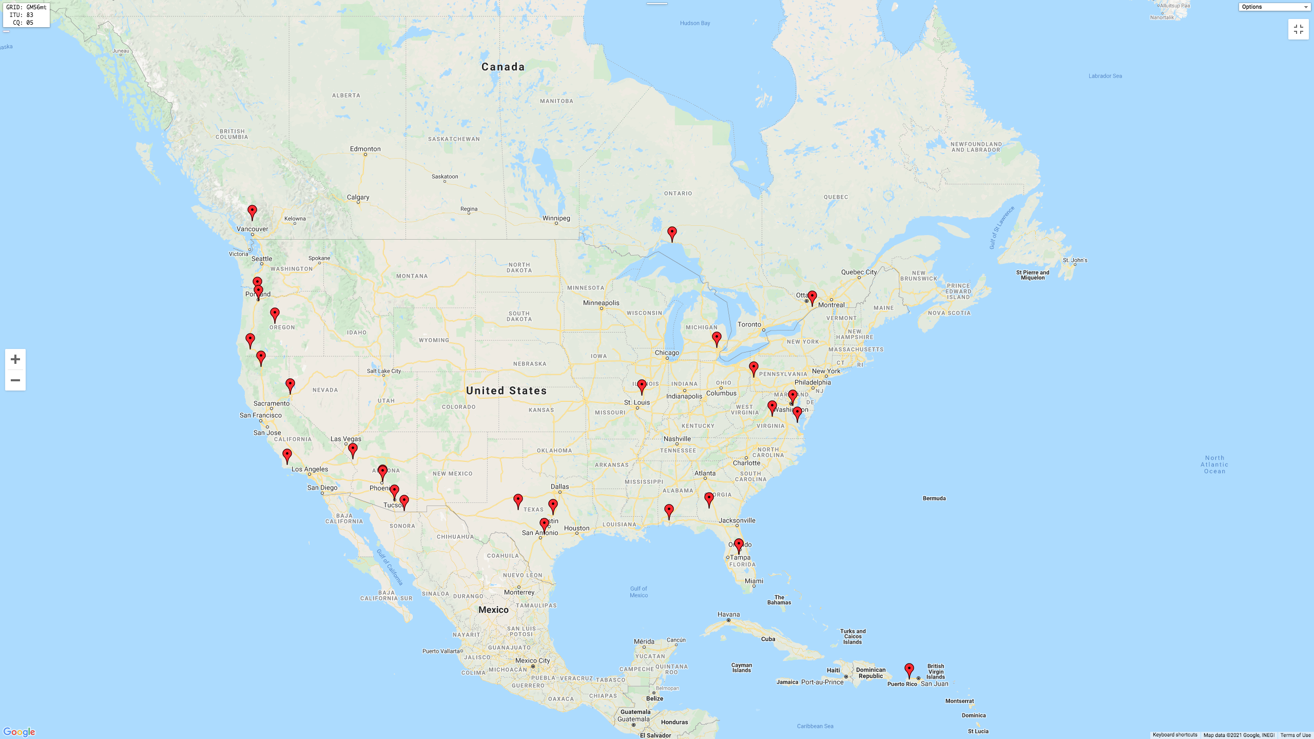 The map below shows my contacts to the USA, Canada, Central & South America.