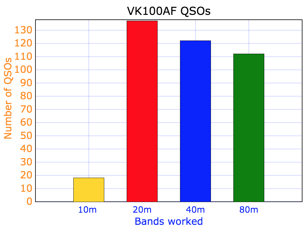 The majority of ur contacts were around Australia and into New Zealand. We made a total of 290 QSOs to VK stations and 14 to New Zealand.