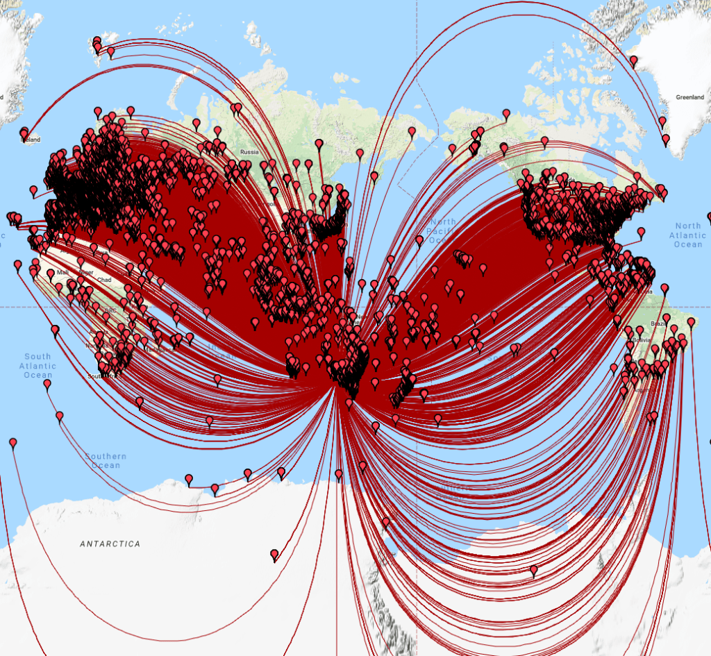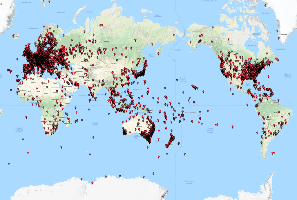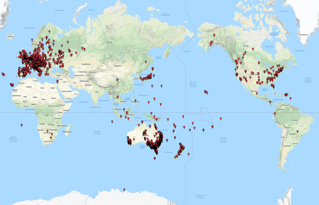 Above:- World map showing our contacts around the world over the 3 days.