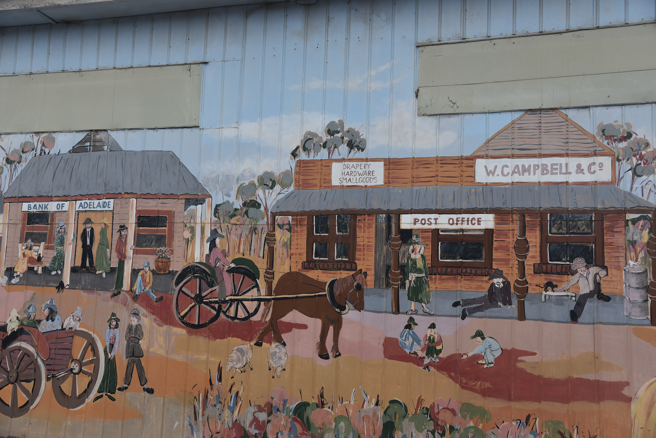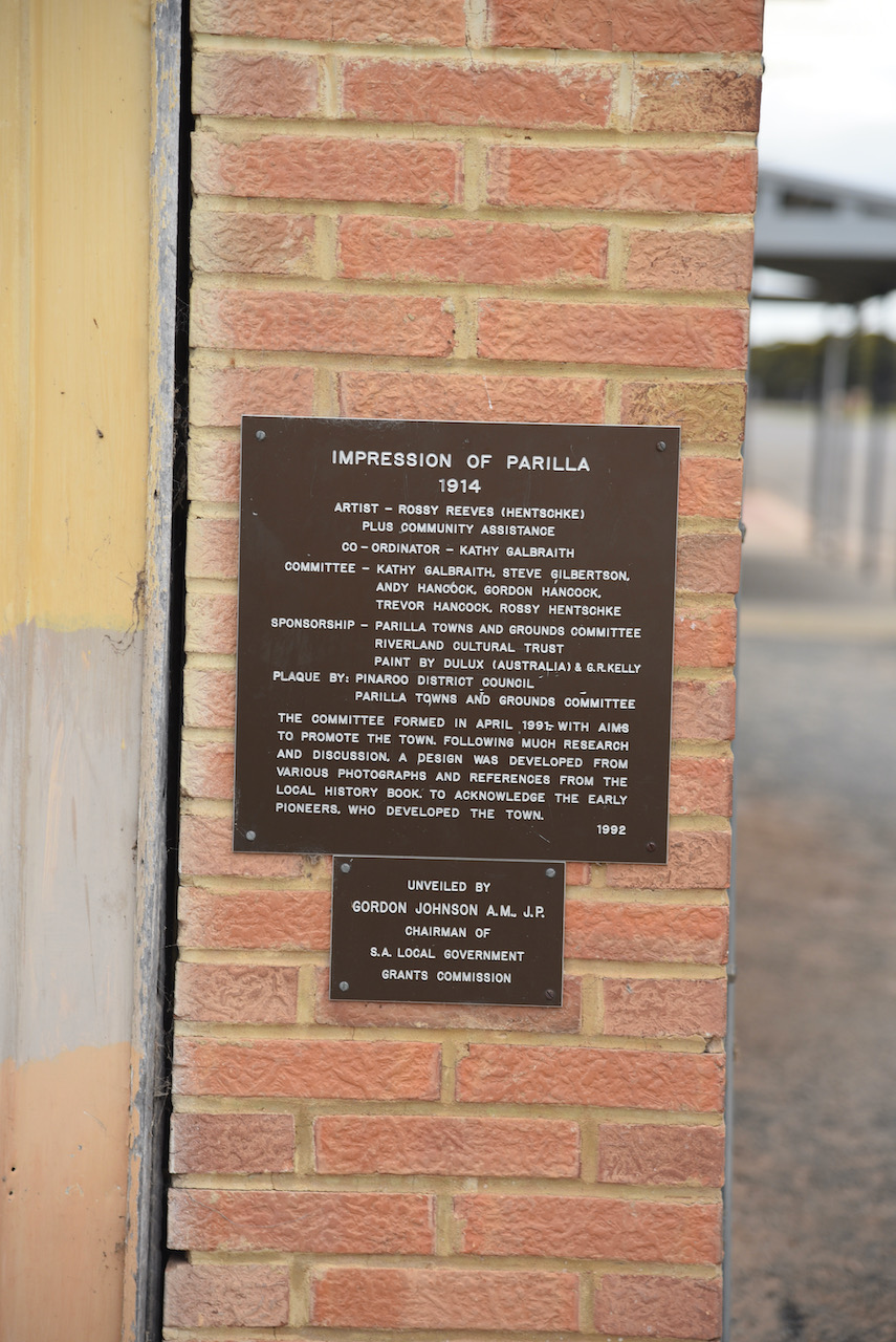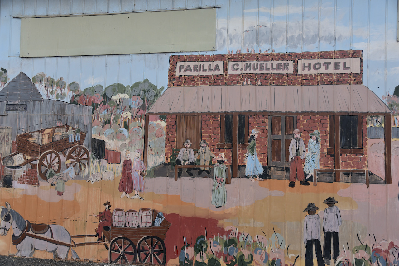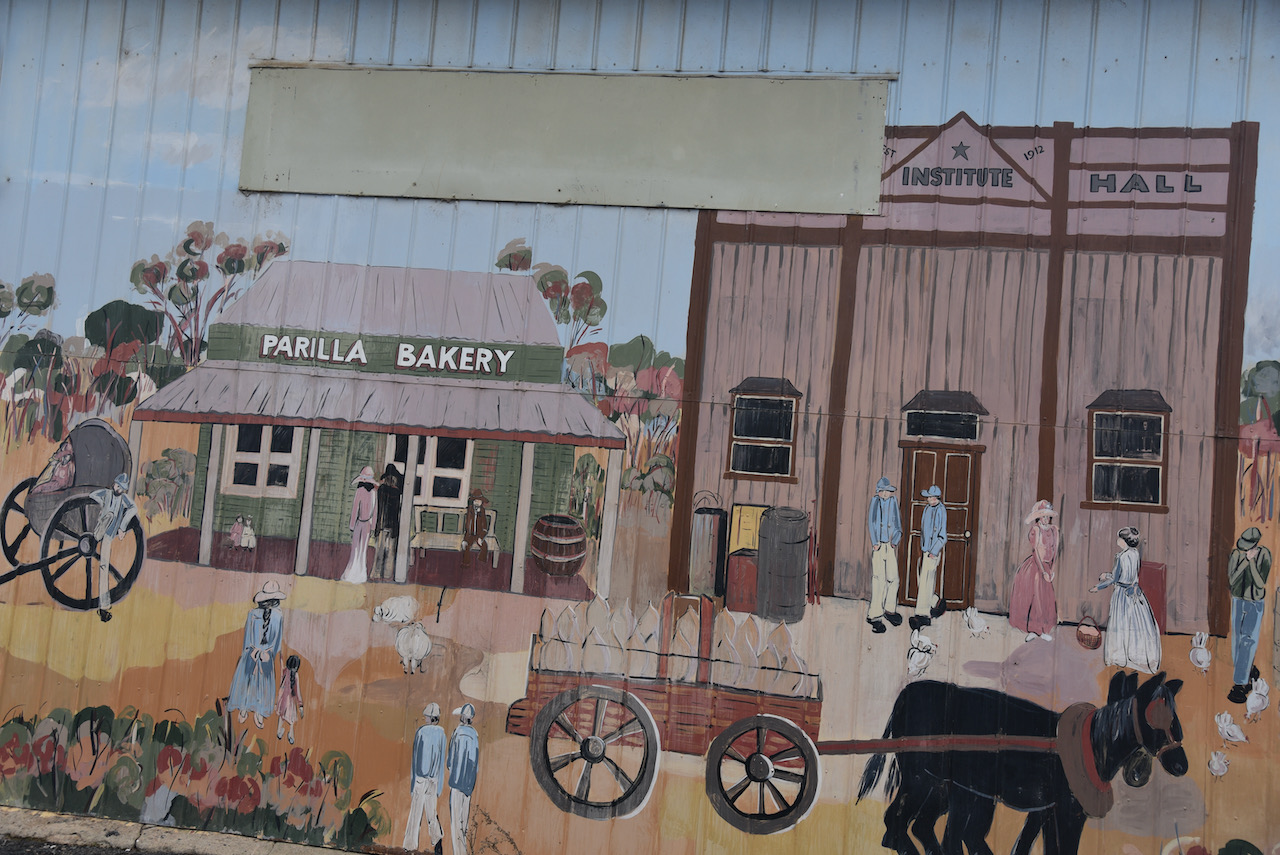 When in Parilla, make sure you have a look at the ‘Impressions of Parilla 1914’ mural. It was designed by artist Rossy Reeves (Hentschke) and was developed from various photographs and references from the Local History book.