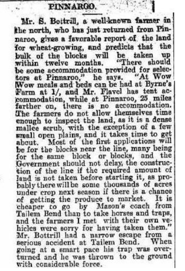 In 1903, a Mr. H.M. Martin of Stonyfell described the Pinnaroo area as follows:-