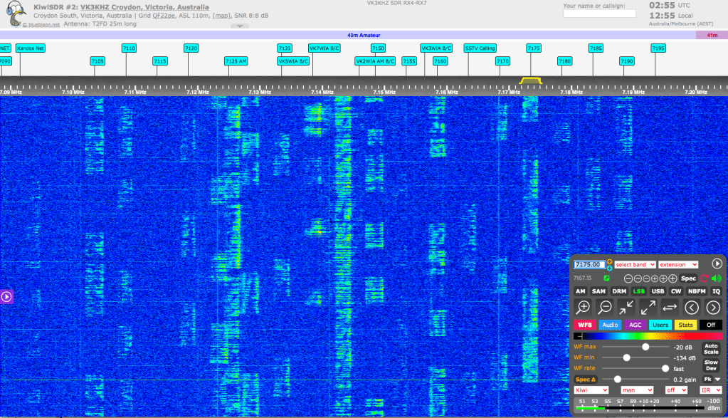 Our 40m antenna is a rotatable dipole at about 55 feet, and with 100 watts, it is difficult to make good contacts on that band into the USA. However, we did make a few, and also made North American contacts on 20m.