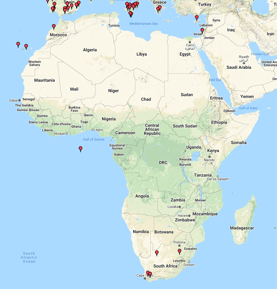 We were very happy to make some contacts on 20m into Africa. The map below shows our contacts into that part of the world.