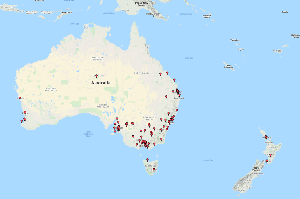 The map below shows our contacts around the world.