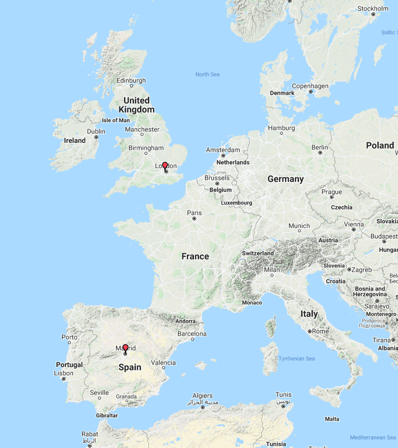 The map below shows our contacts into Europe.