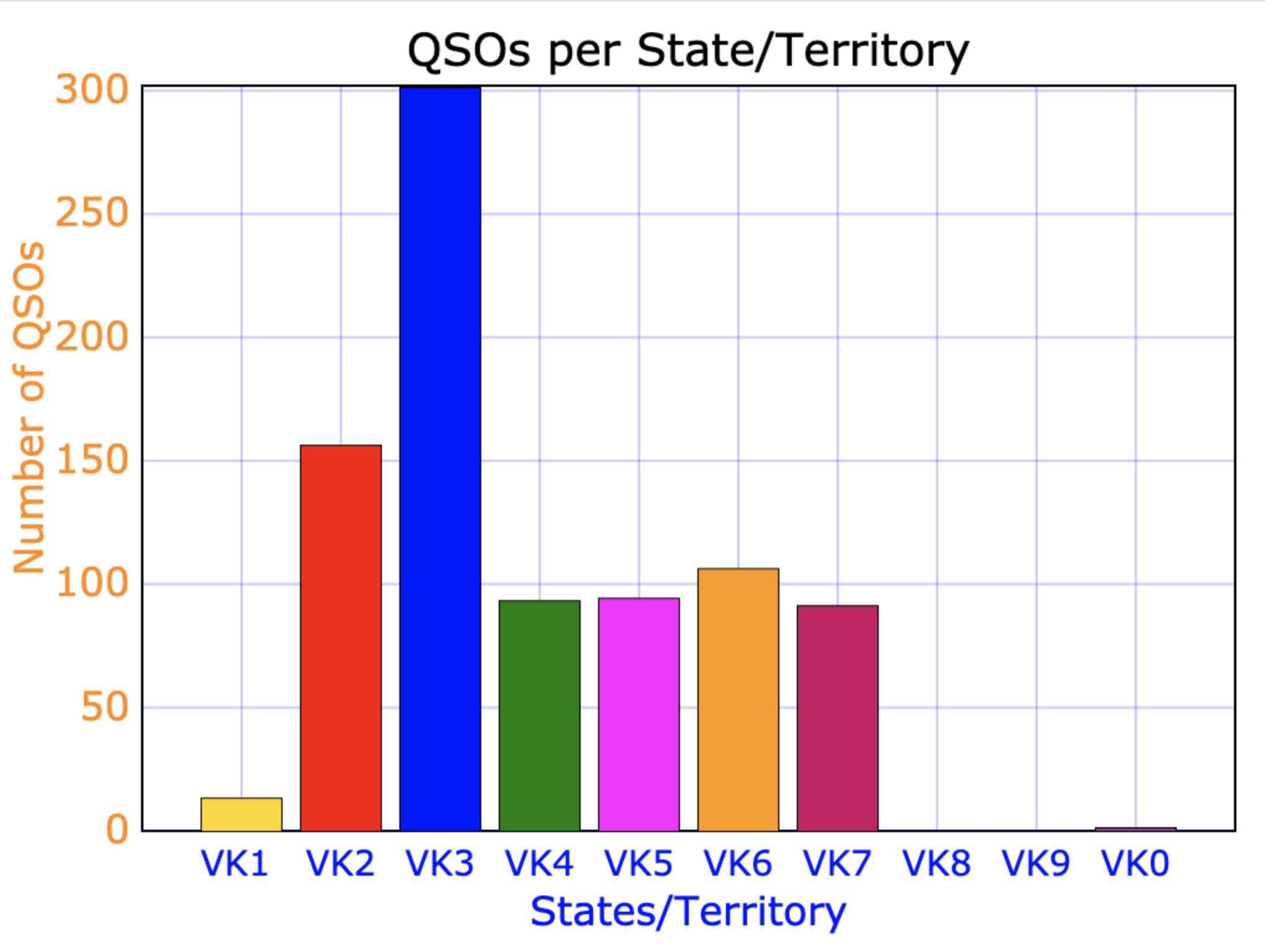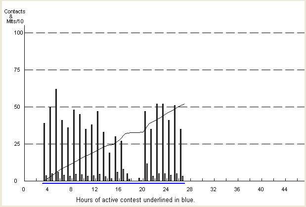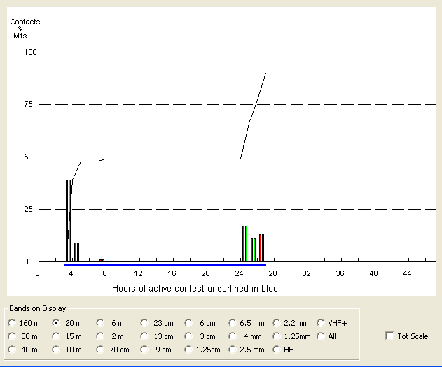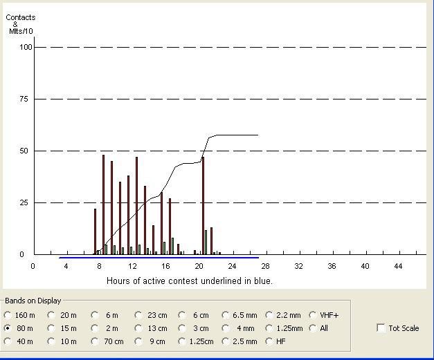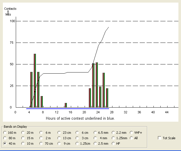 Most of our contacts were on the 40m band as can be seen in the graph below.