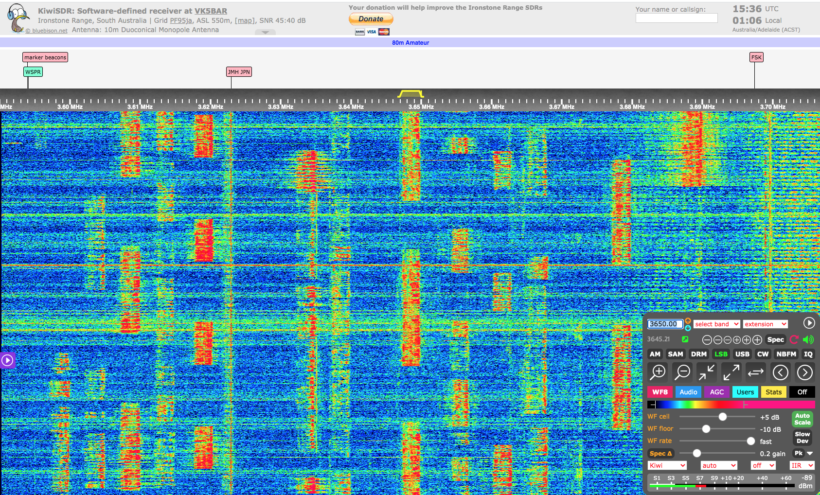 Our 40m antenna is a rotatable dipole at about 55 feet, and with 100 watts, it is difficult to make good contacts on that band into the USA. However, we did make a few, and also made North American contacts on 20m.