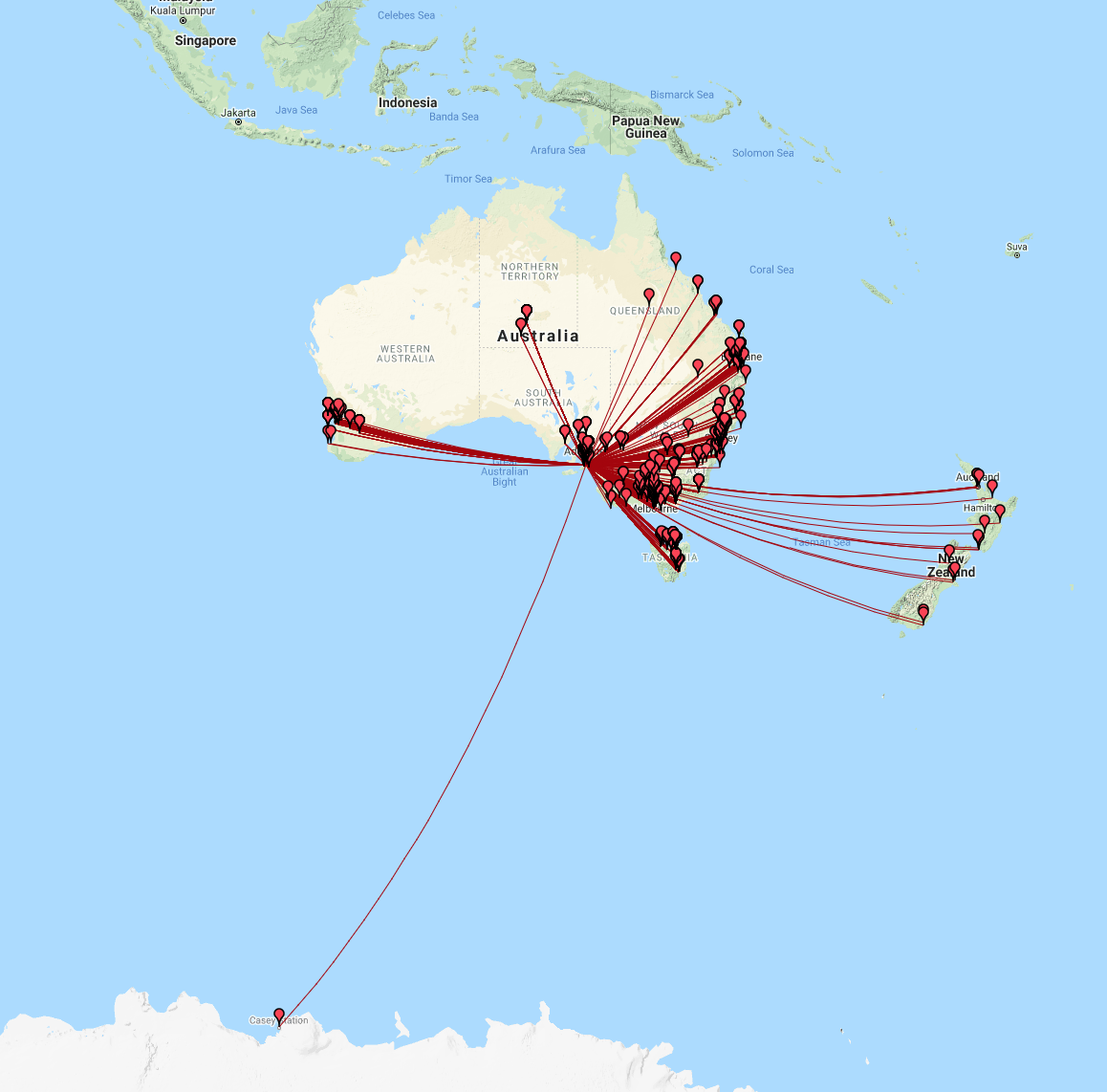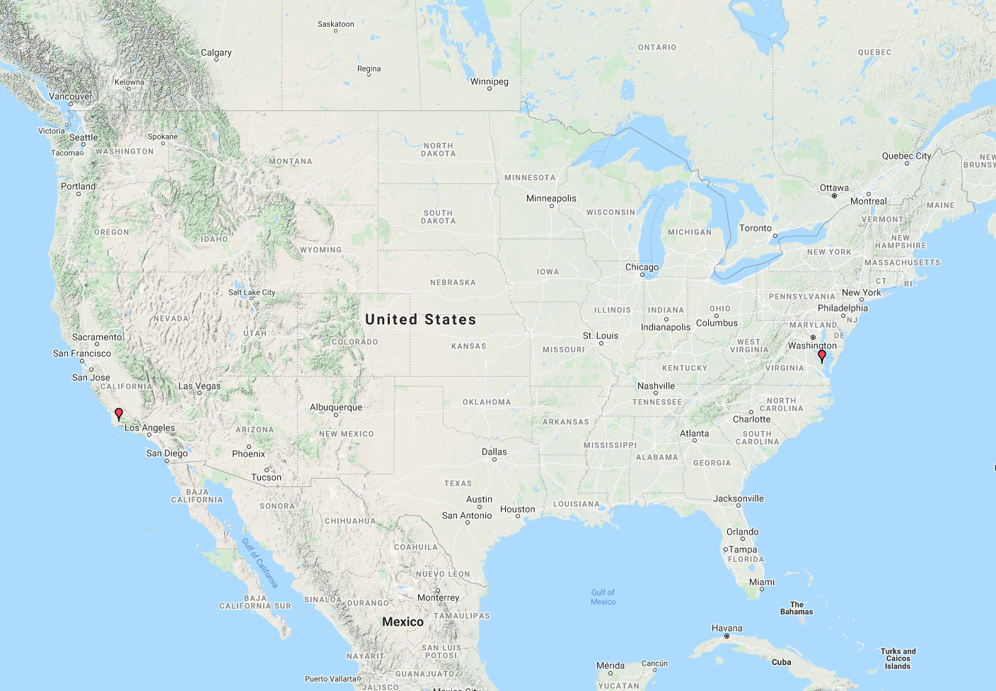 The map below shows our contacts into North America and the Carribean.