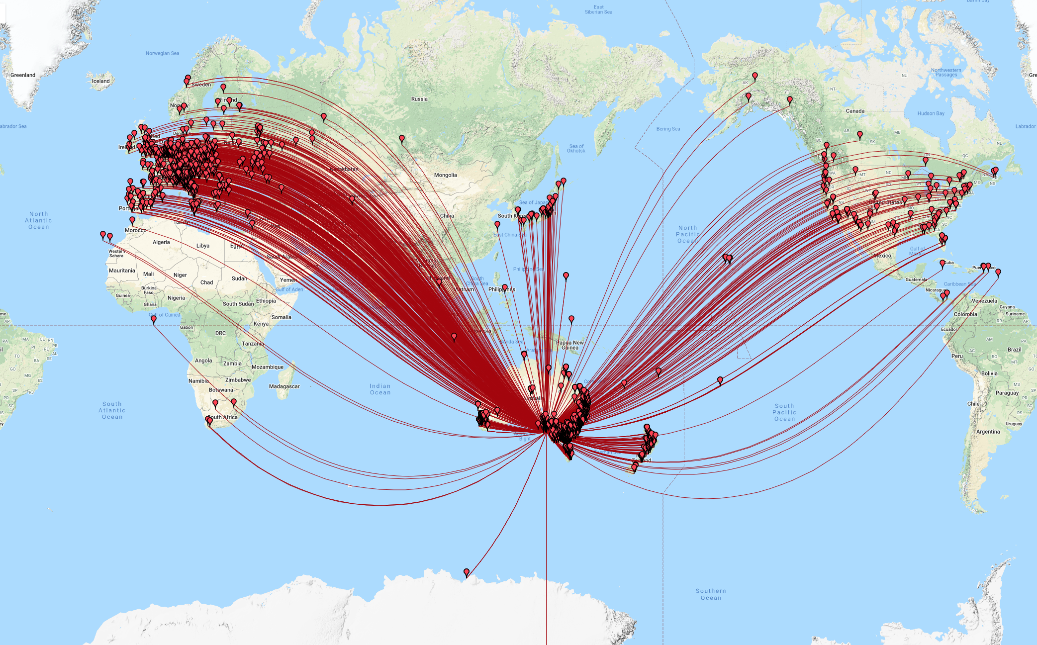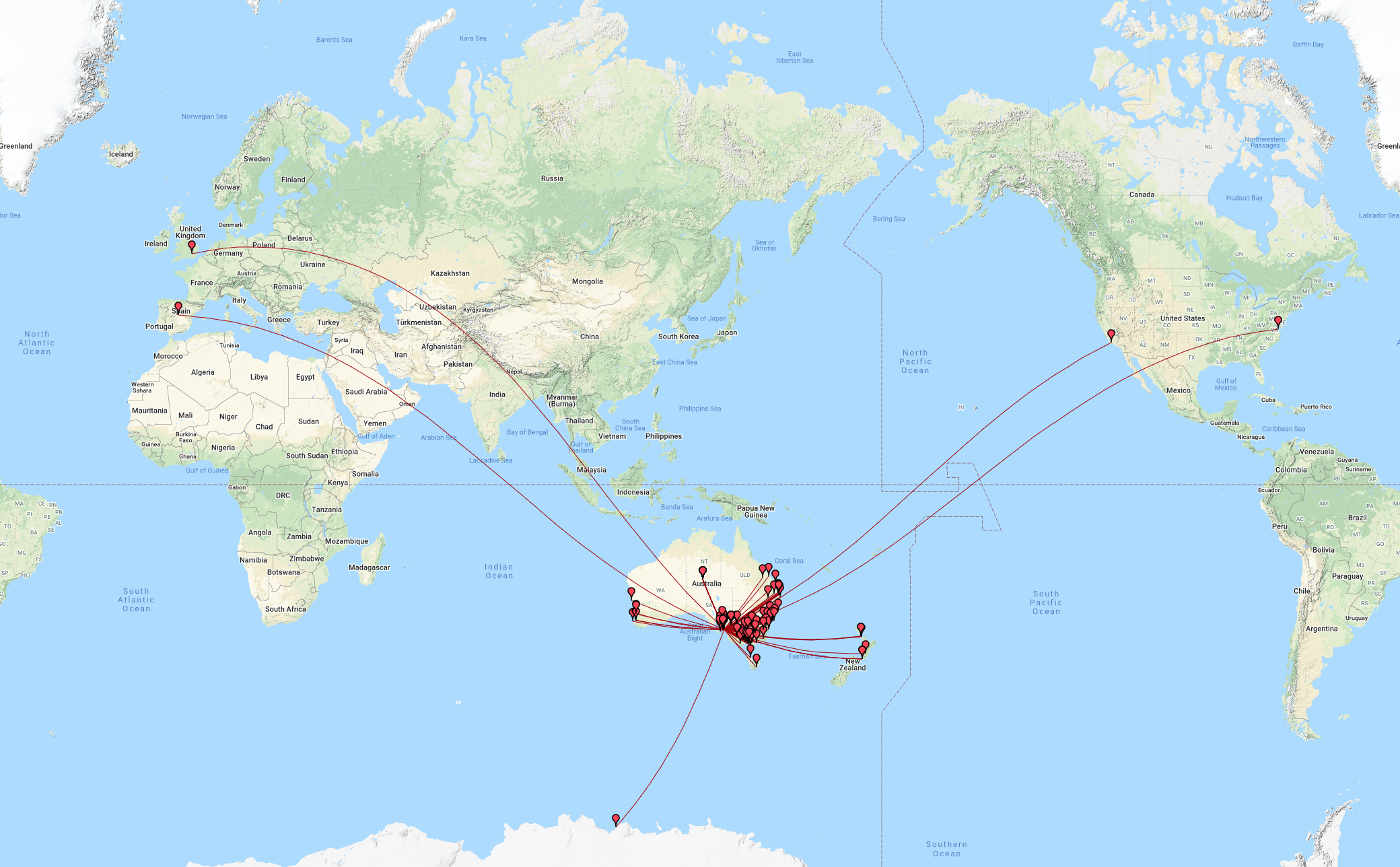 The map below shows our contacts around the world.