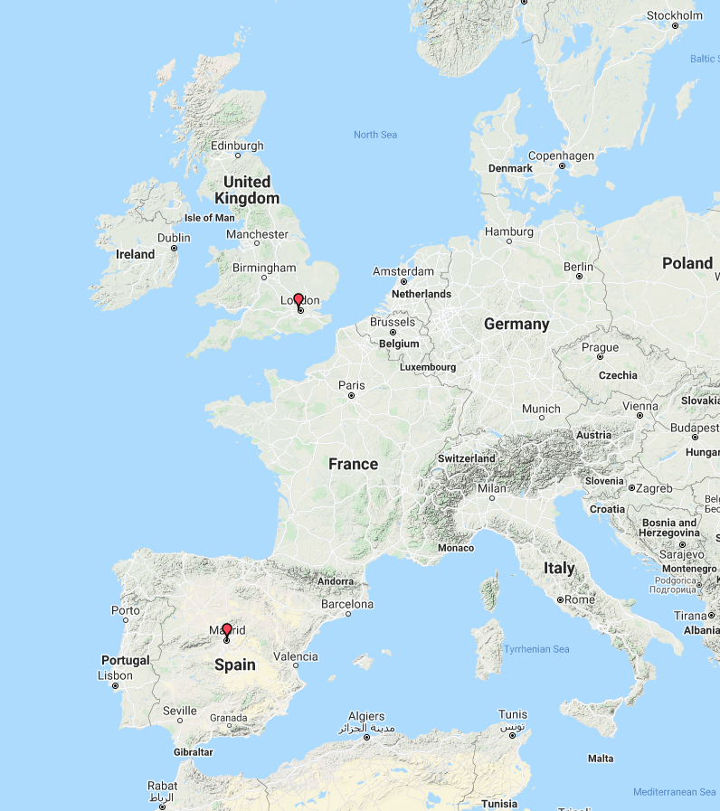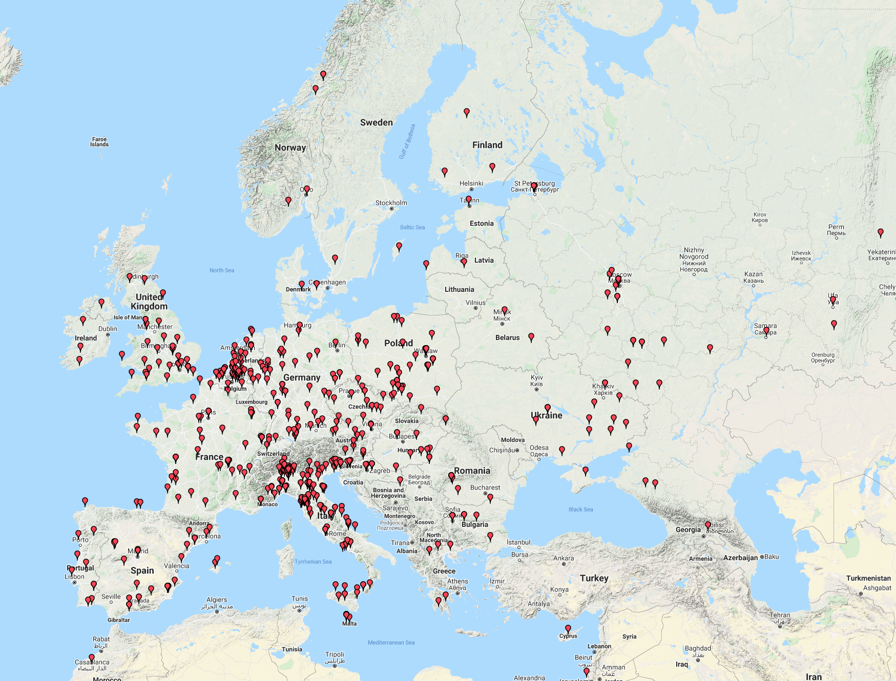 The map below shows our contacts into Europe.