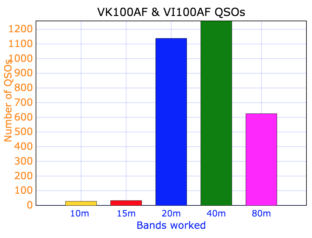 Marija and me were one of around 50 amateurs who took part using the calls. VI100AF was on air from March until the end of May. VK100AF remains on air until the end of August.