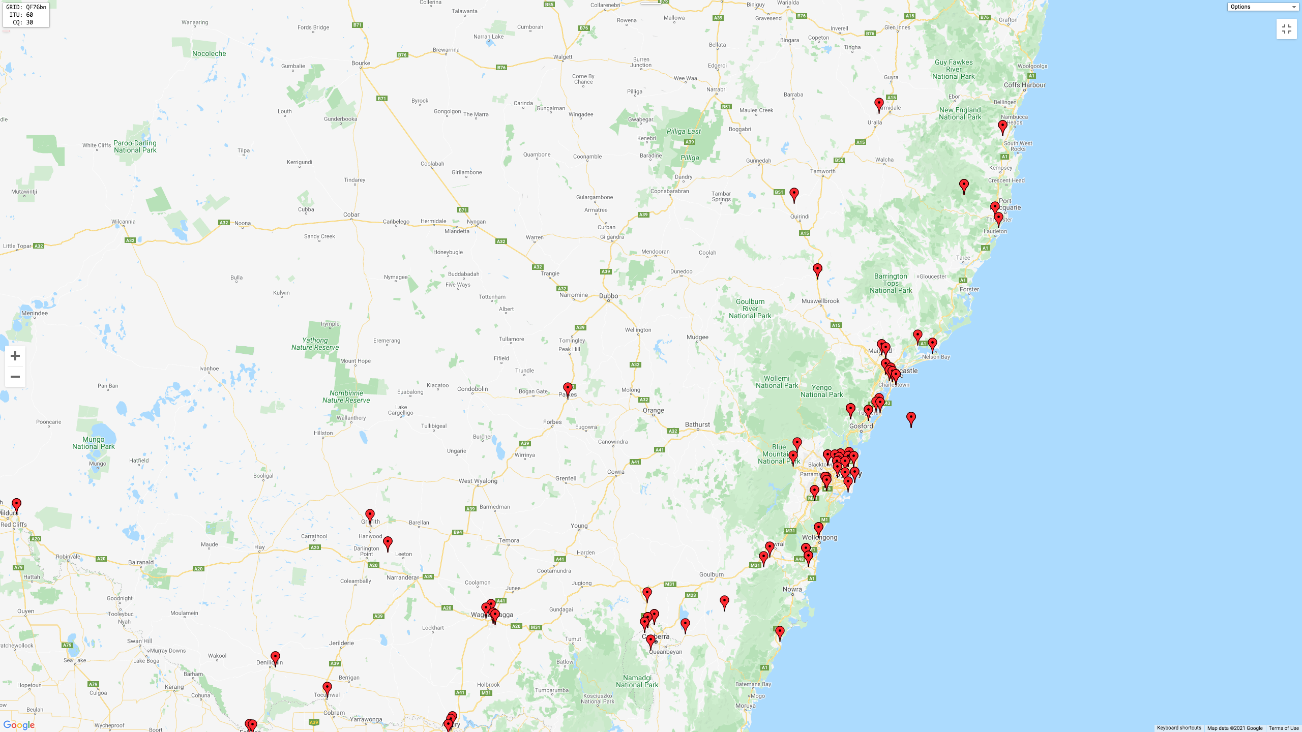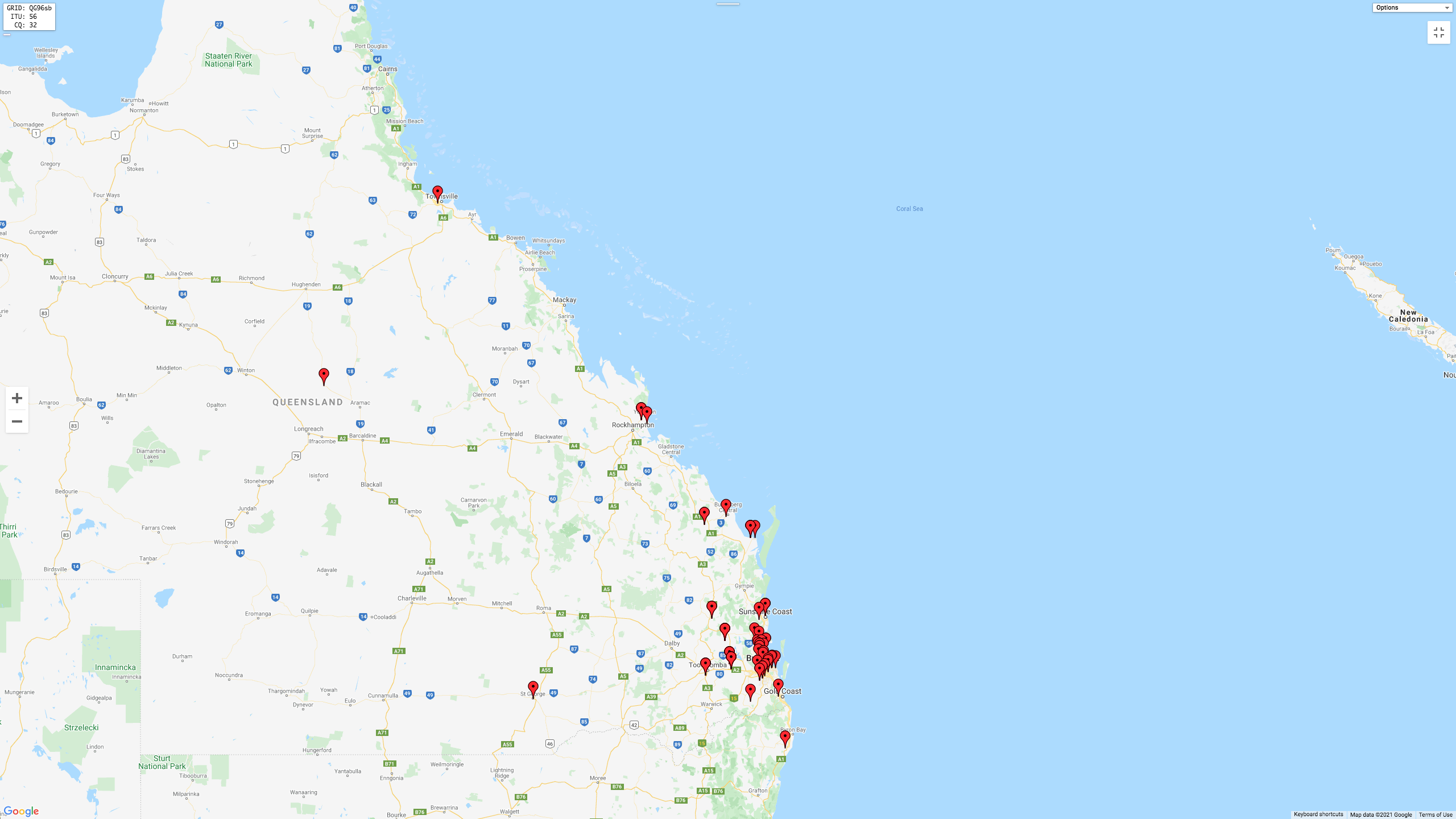 We were very happy to make some contacts on 20m into Africa. The map below shows our contacts into that part of the world.