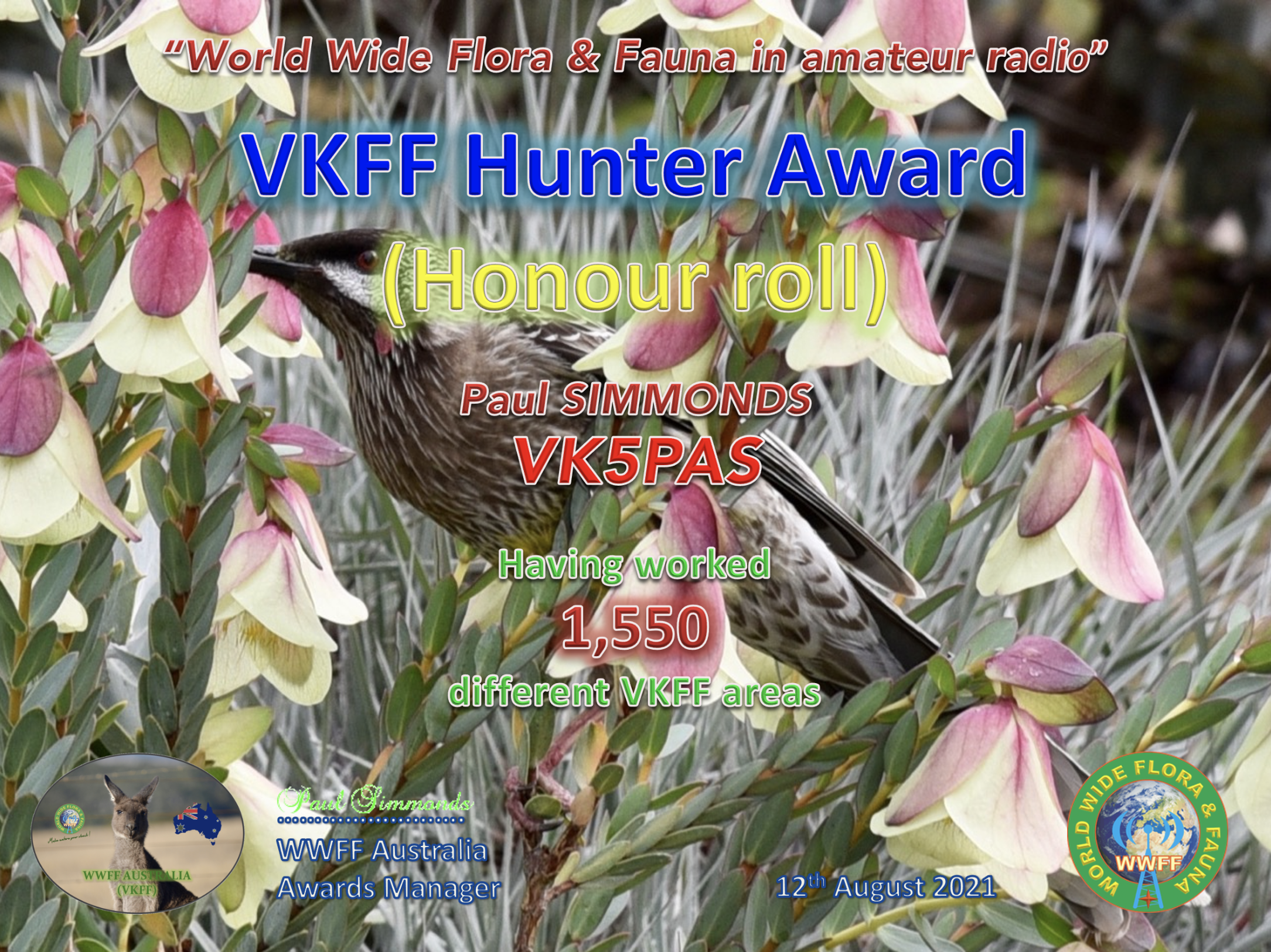 THANK YOU to everyone who called us between March and August whilst we had the calls. We had a terrific time and it was a real honour to be able to use the special event callsigns. Thanks to Stuie VK8NSB for asking us to take part.
