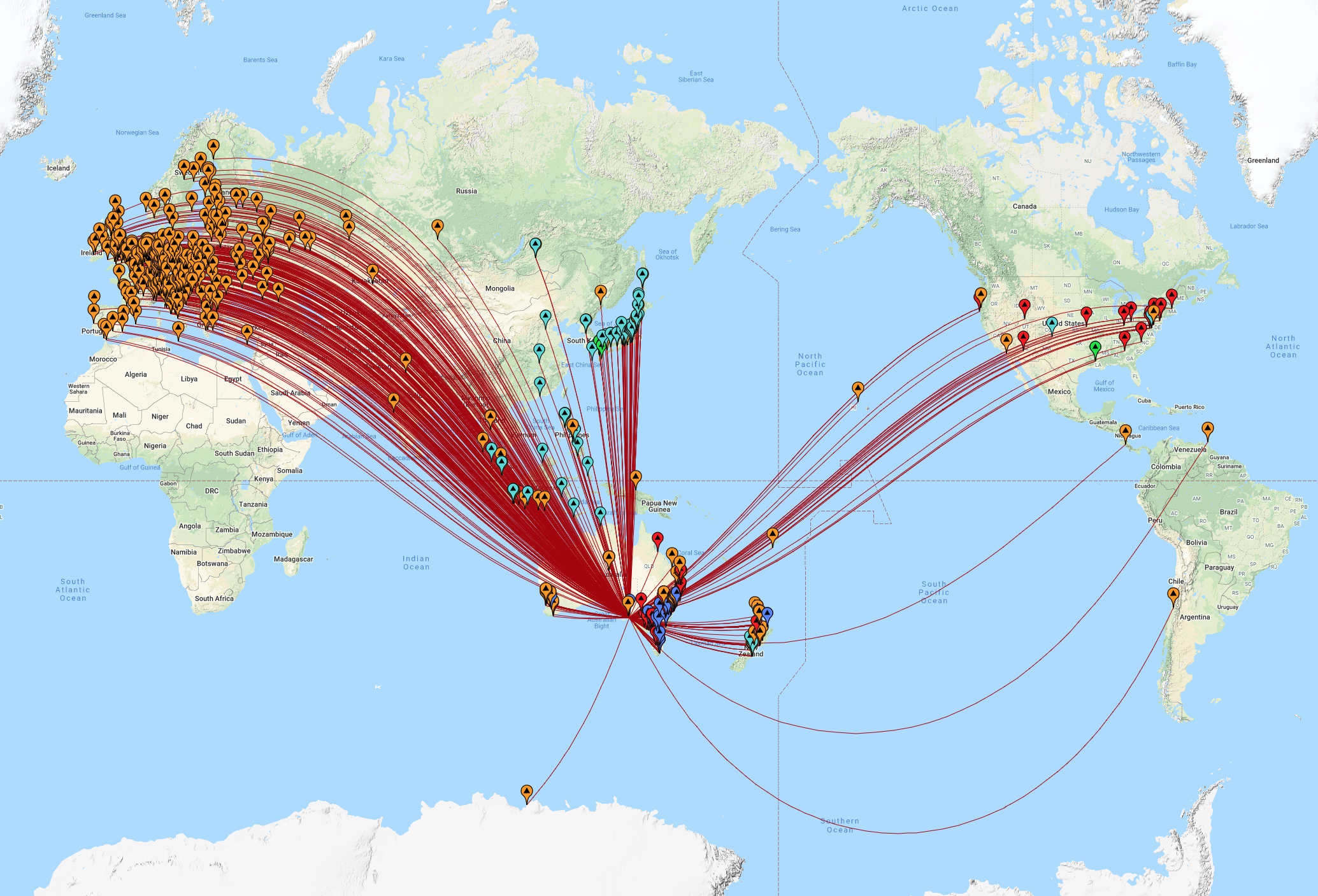 The map below shows my contacts around the world during the Contest. A guide to the pins is as follows: