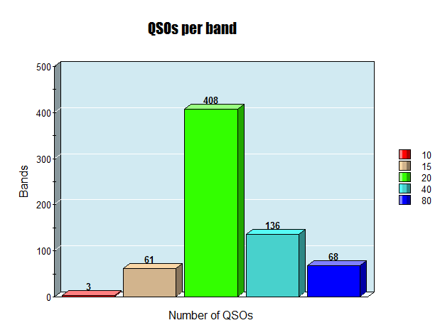My contacts into North America were limited. I worked a few USA on 20m and one on 10m. Unfortunately I did not hear too many USA signals on 40m.