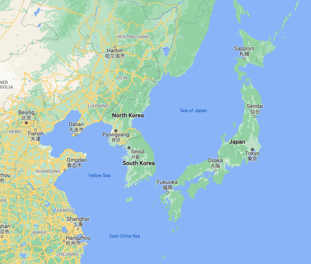 Above:- Map showing the location of North Korea. Map c/o Google maps.
