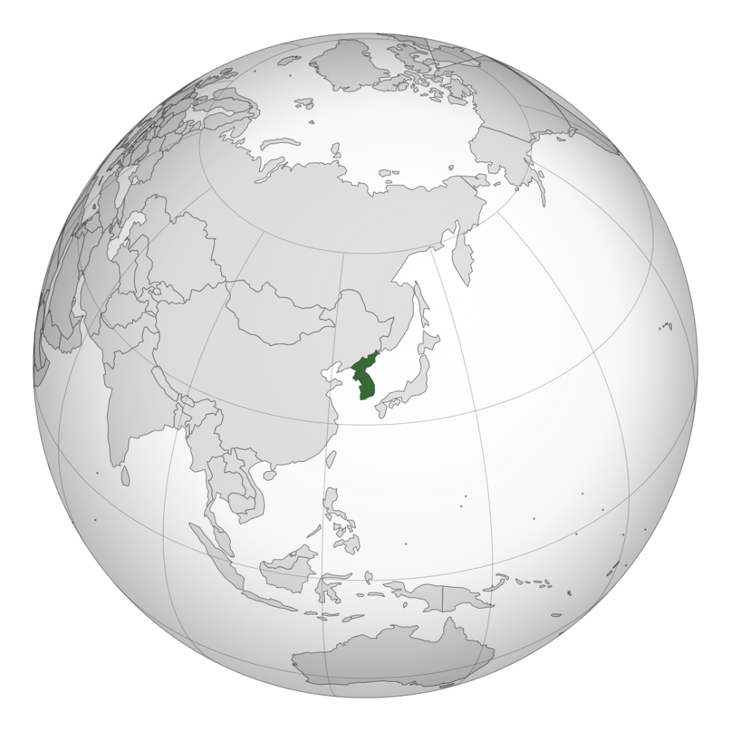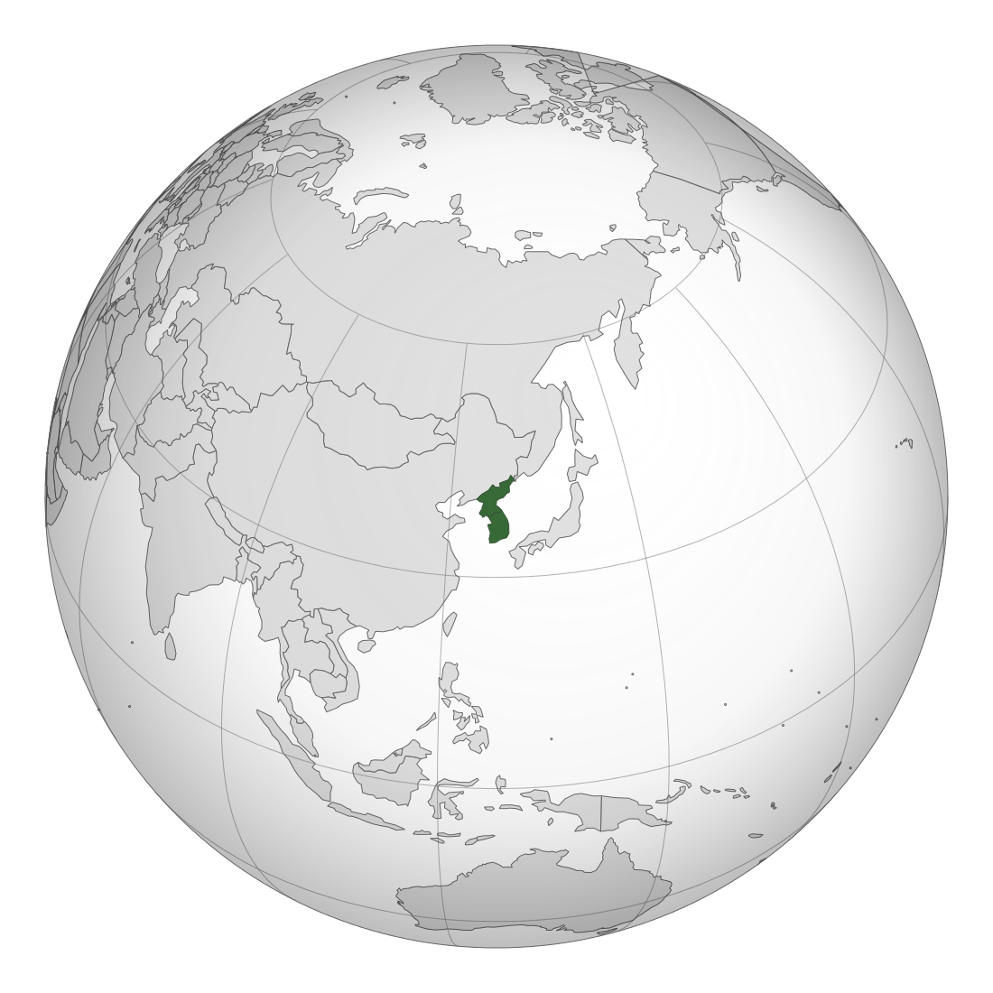 Above:- World globe showing the location of Korea. Image c/o Wikipedia