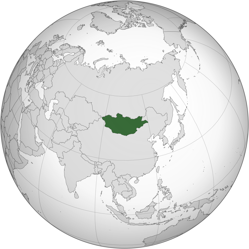 Above:- World globe showing the location of Mongolia. Image c/o Wikipedia.