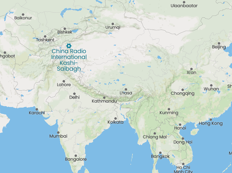 Above:- CRI’s Kashi-Saibagh transmitter site. Map c/o Mapcarta