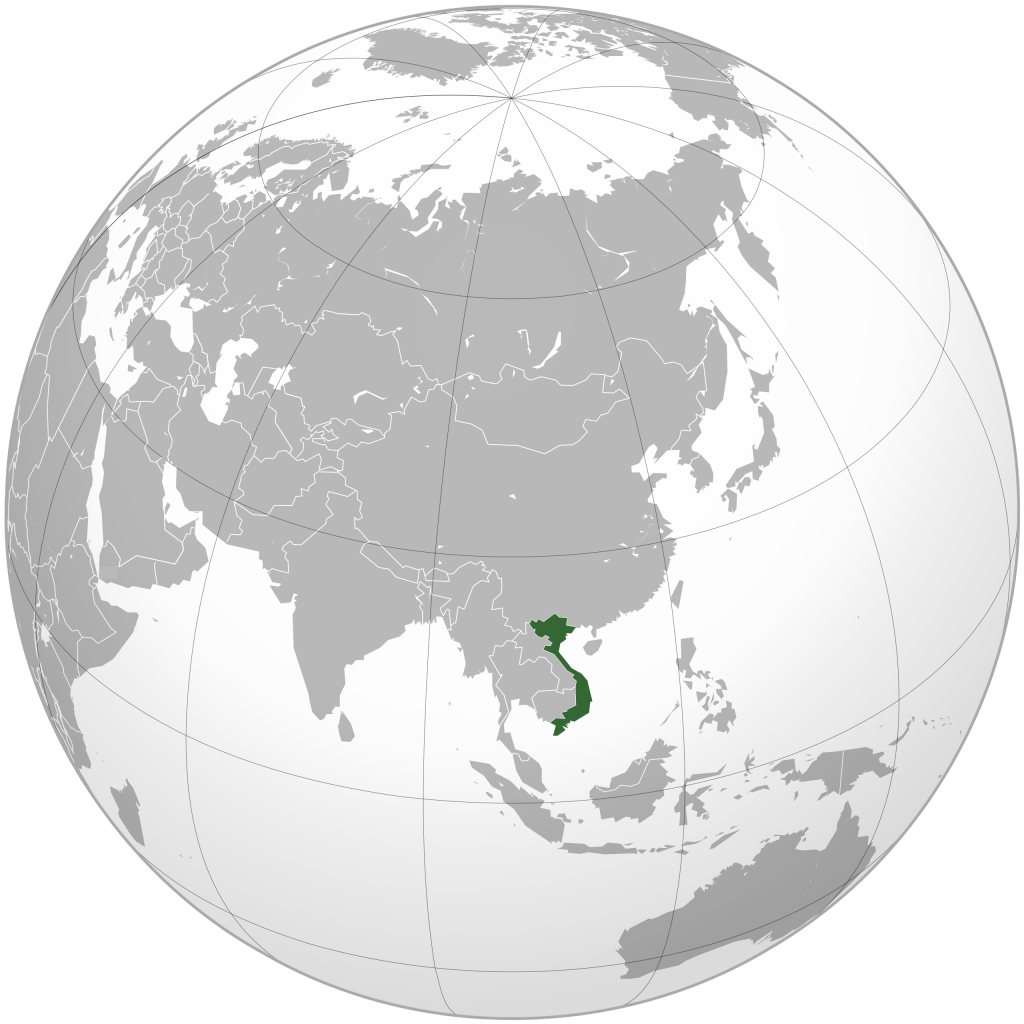 Above:- World globe showing the location of Vietnam. Image c/o Wikipedia.
