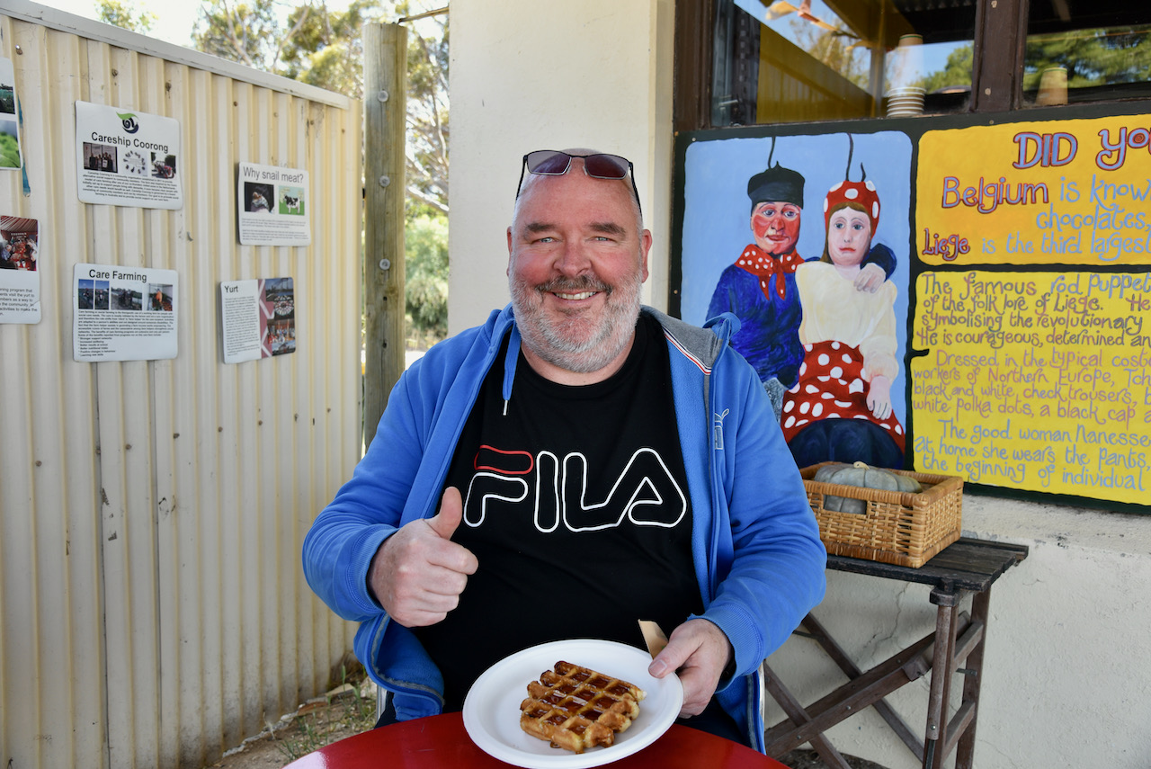 We then stopped off at the Waffles & Jaffles Cafe at Coonalpyn and enjoyed some Belgium waffles.