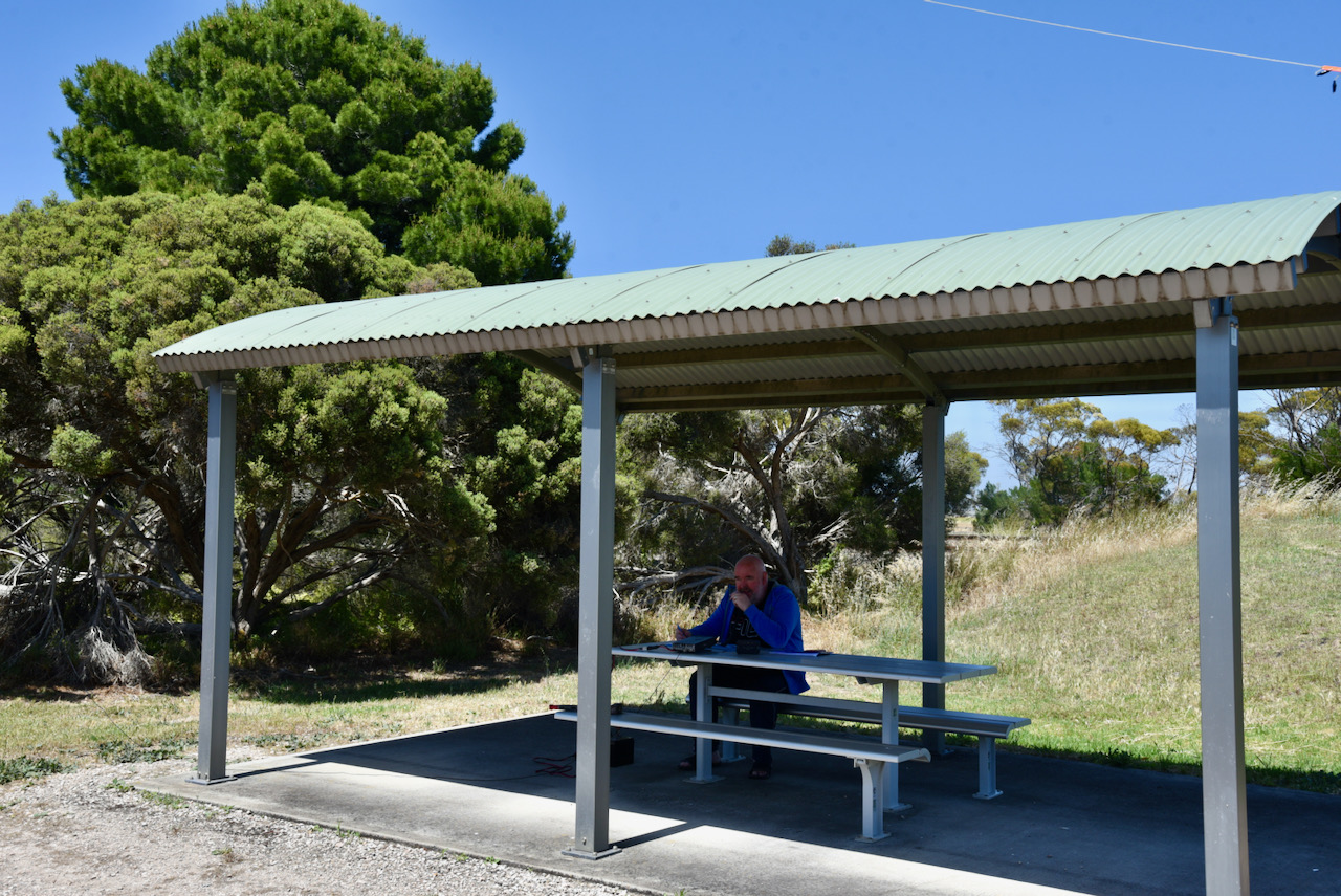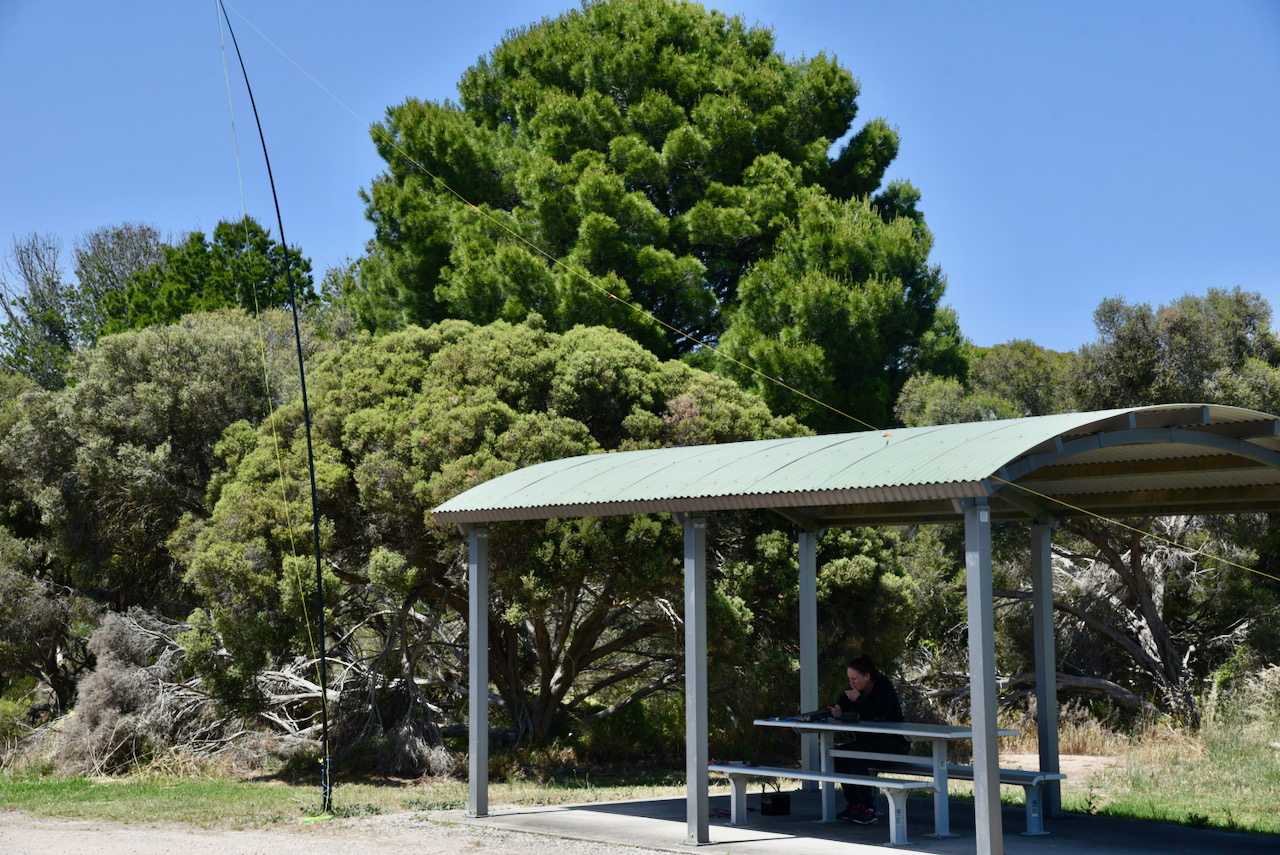 To complete the activation we tried our luck on the 80m band, but the noise floor there was also strength 9. We logged just the one station, Adrian VK5FANA, before deciding that we would pack up and head to the next silo.