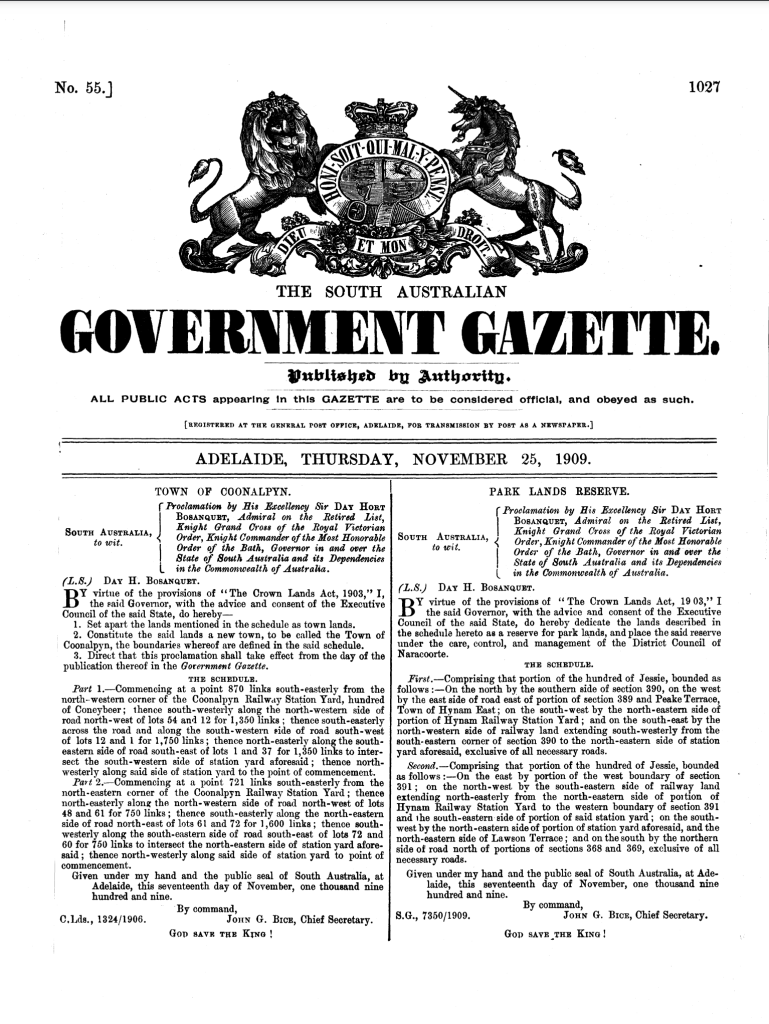 - State Library SA, 2021, <https://published.collections.slsa.sa.gov.au/placenamesofsouthaustralia/>, viewed 1st December 2021.