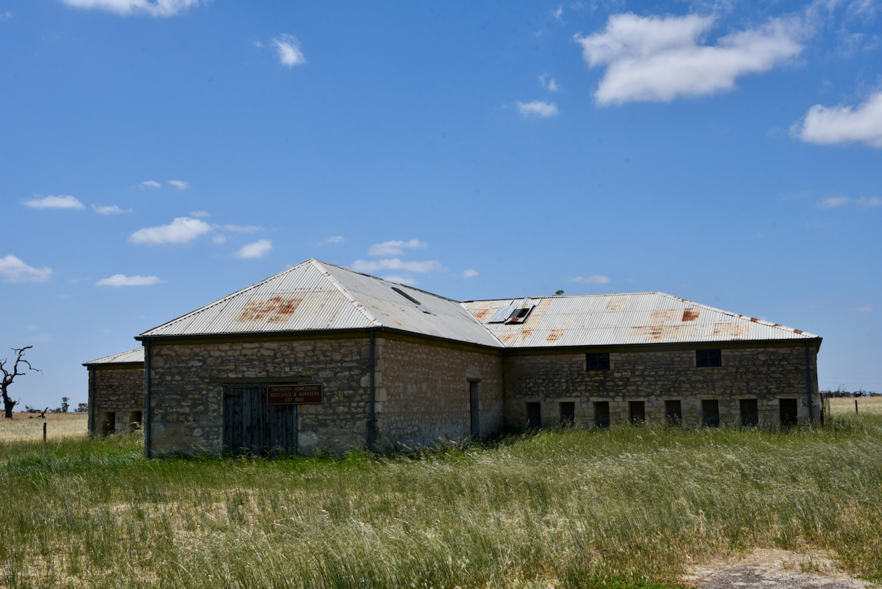 The Tintinara homestead was constructed in 1865. Shortly afterwards it became a post office. For many years it was a stopping point for Tolmer and his gold escort group. The walls of the homestead were once papered with old copies of the Adelaide Chronicle.